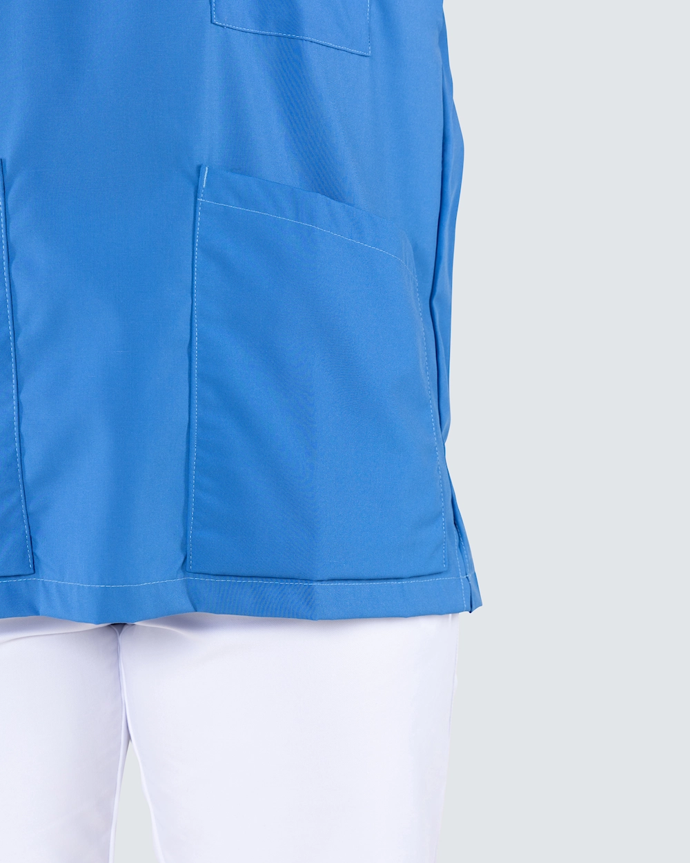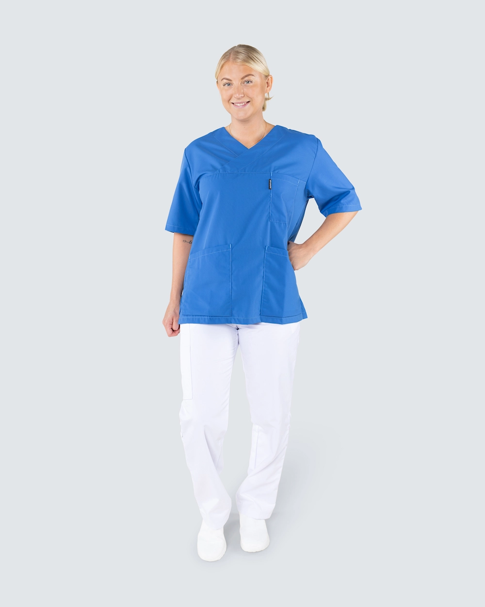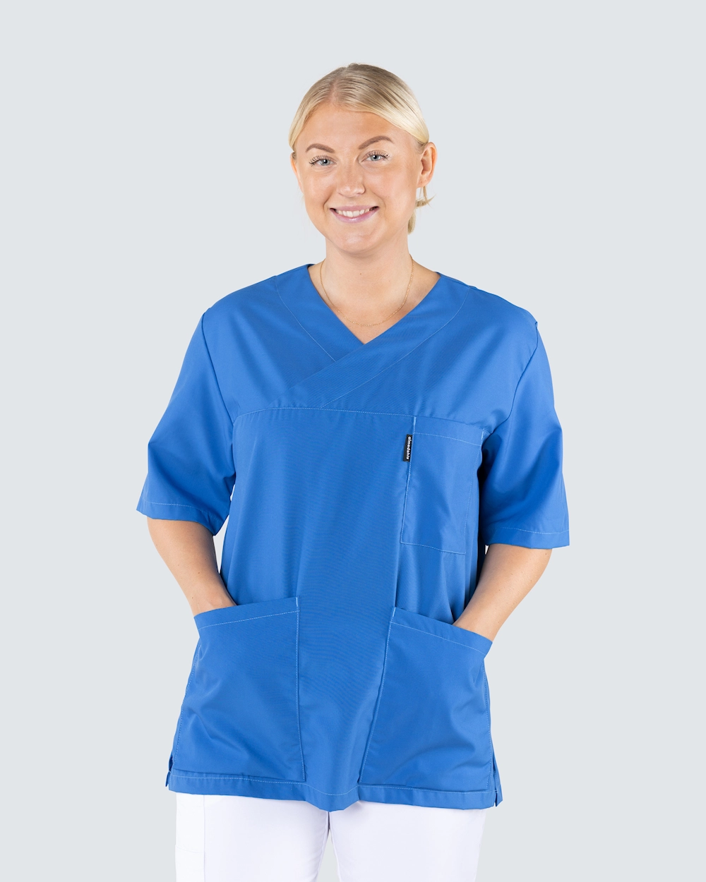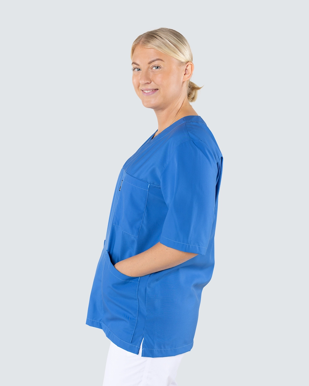 Denna blus är tillverkad i en Tencel/polyester-blandning vilket ger ett mjukt och skönt plagg som är hållbart och färgbeständigt. Tencellen låter plagget andas och transportera fukt för att du ska kunna hålla dig sval och bekväm under långa arbetspass. Blusen har bröstficka och rymliga höftfickor och tillsammans med den goda rörelsefriheten, tack vare både sprund och ryggveck, får du en bekväm och praktisk arbetsblus.