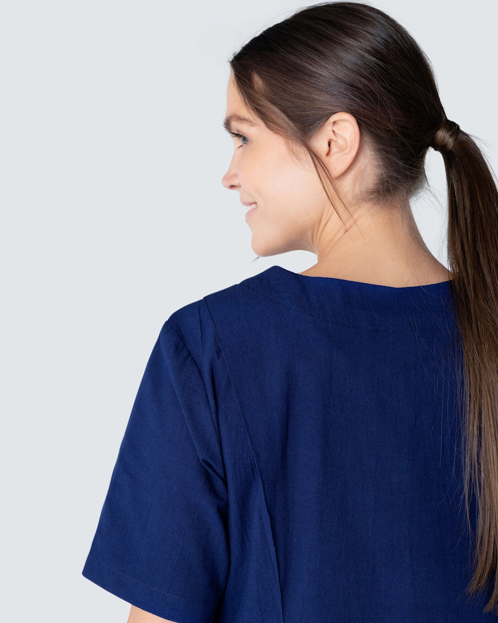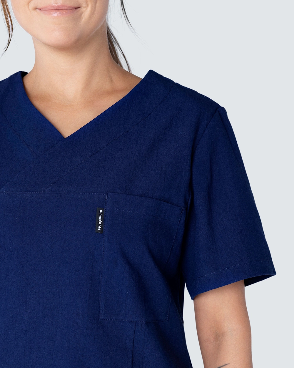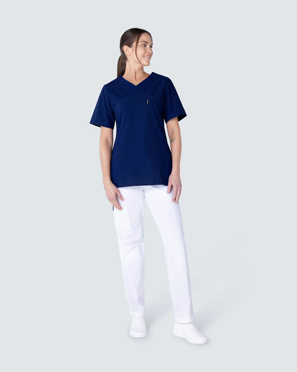 Bussarong i krinklad bomull som ger en lätt och sval känsla. Den krinklade bomullen är lättskött och kräver minimalt med skötsel, såsom strykning. Bussarongen har v-hals och är i lätt insvängd modell, vilket ger en fin silhuett och passform. Med både bröstficka och två höftfickor med mobilficka och nyckelhälla har du gott om plats för diverse arbetsredskap och artiklar du behöver under en arbetsdag.