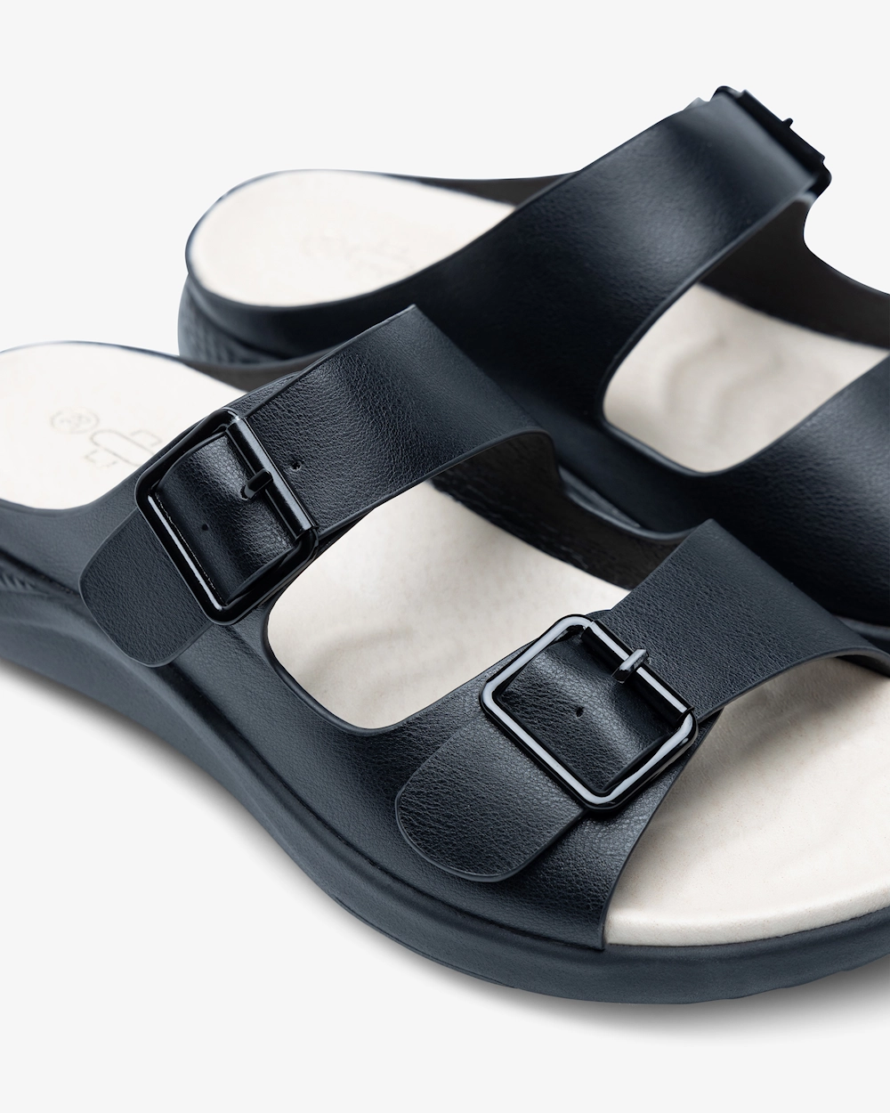 Arbetssandal i slip in-modell med mjuk fotbädd. De två justerbara remmarna ger möjlighet till att anpassa passformen för att få optimal bekvämlighet. Sulan har goda stötdämpande egenskaper som gör varje steg mer bekvämt under långa arbetspass.