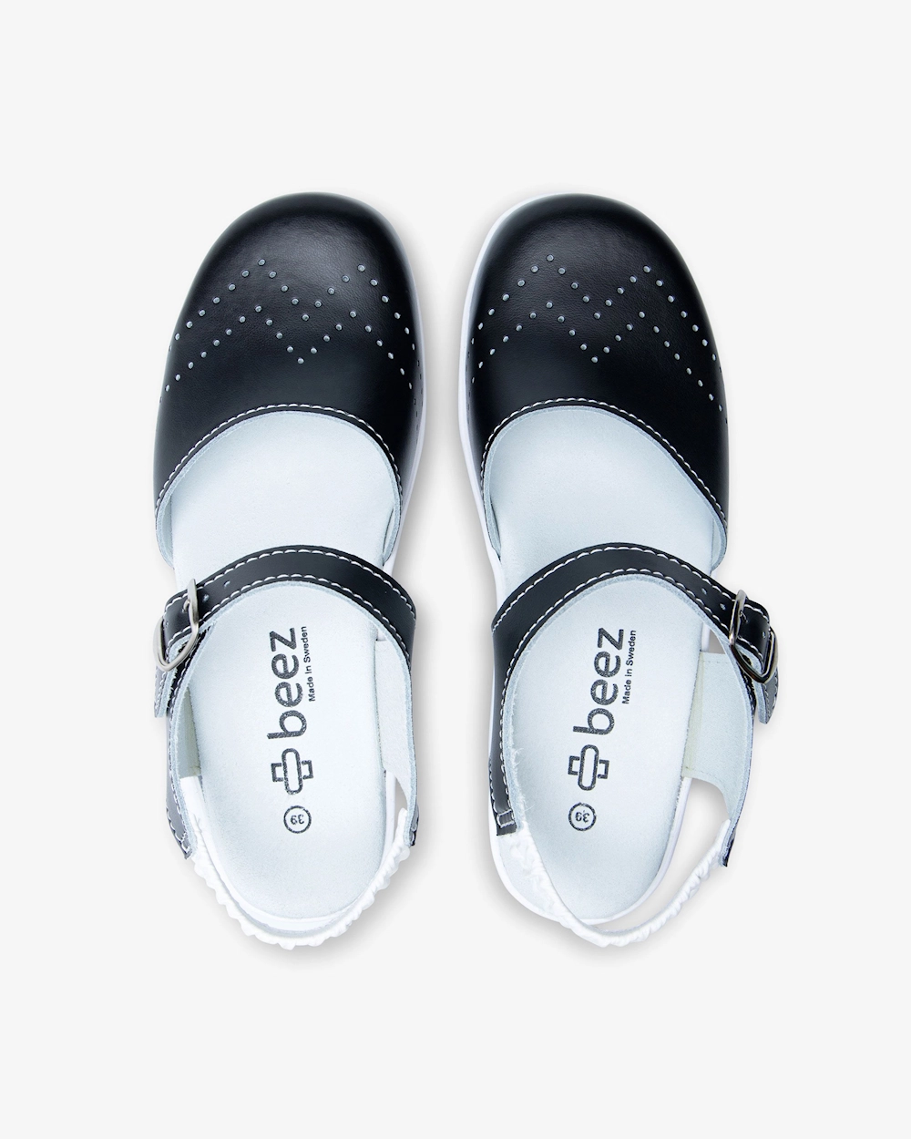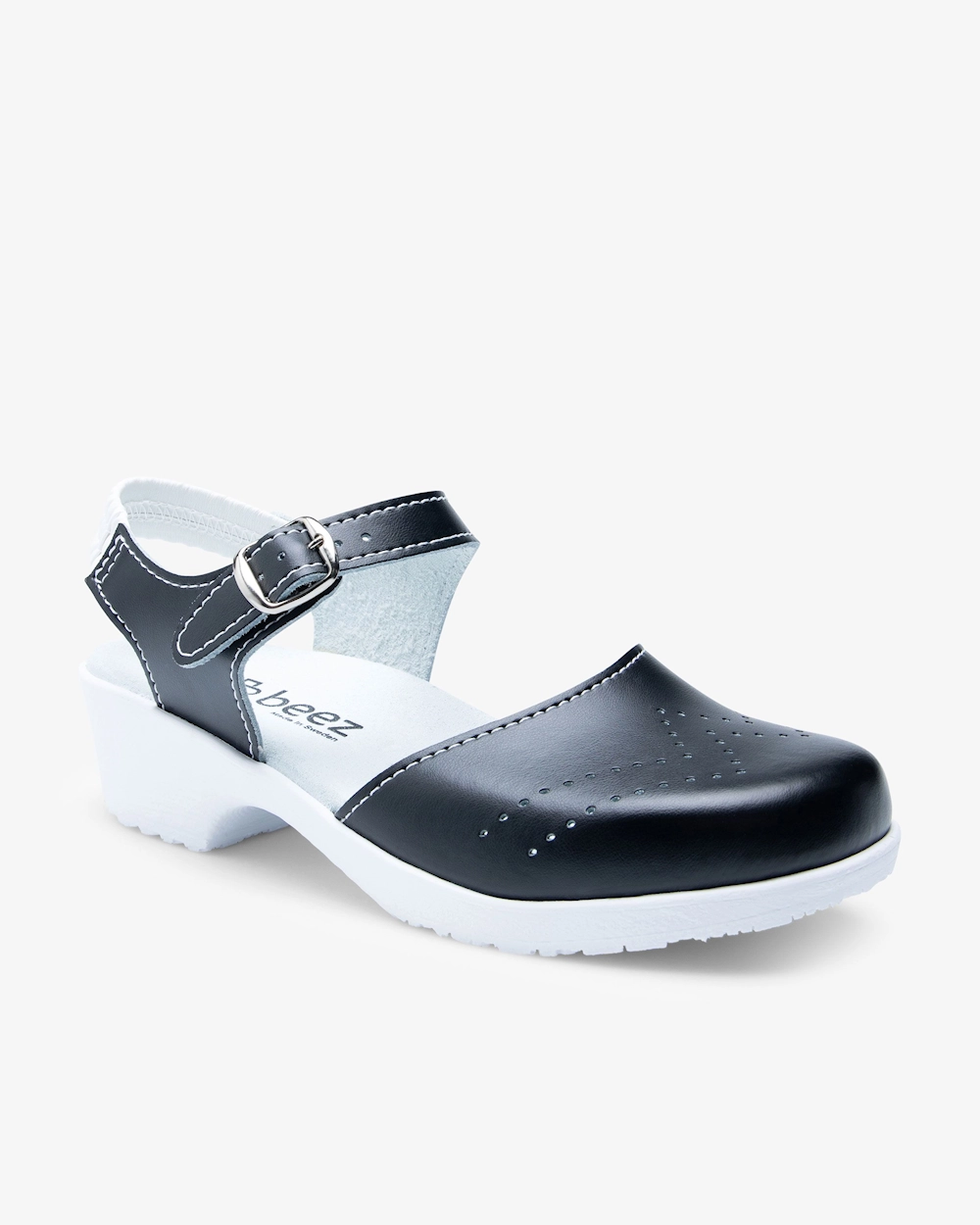Vårdväskans arbetssskor tillverkas för hand i Sverige och är utformade för vårdyrket. Ovandelen är tillverkad i äkta läder med ett skyddande överdrag av matt PU. En beläggning av PU innebär att du kan rengöra ytan med mild tvål och vatten. Sulan är av mjuk, slitstark PU (polyuretan) och har ett inlägg av mjuk kalvmocka. Skon andas bra och har en hård tå som skyddar mot lätta smällar. Perfekt sko för dig som arbetar långa dagar på hårda golv.