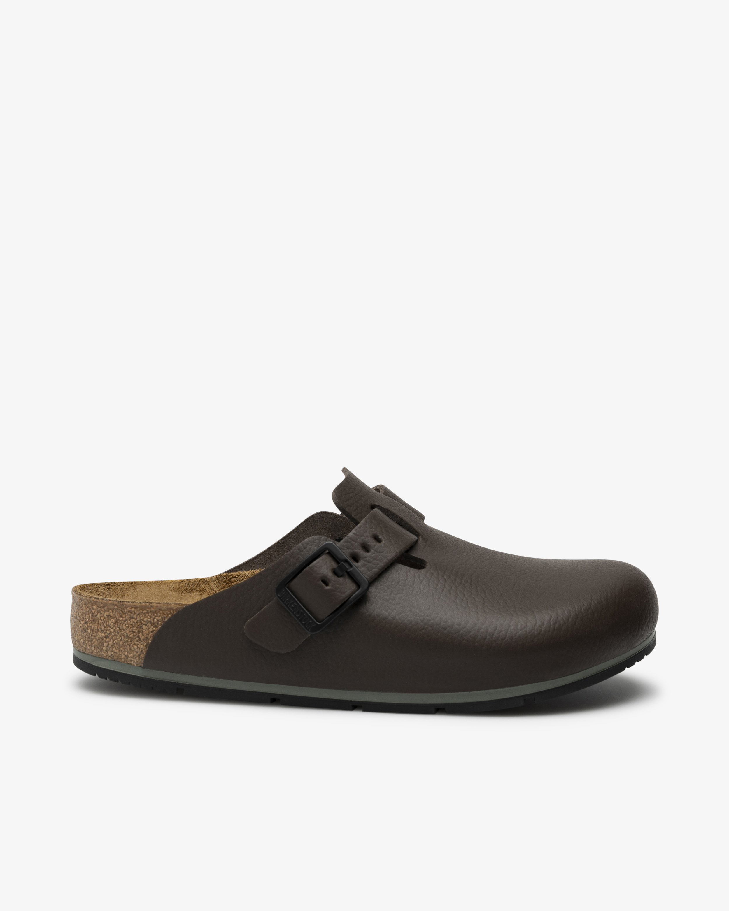 Birkenstock Boston PRO Narrow är en professionell toffel som kombinerar komfort och funktionalitet. Anatomiskt formad kork-latex fotbädd ger optimal ergonomisk support, medan ovandelen av PU-belagt naturläder erbjuder hållbarhet. Den bekväma fotbädden av mocka och justerbara remmen säkerställer en perfekt passform. Polyuretanmellansulan och olje- och fettbeständig yttersula ger extra skydd och stabilitet, idealiska för hektiska dagar inom sjukvården.