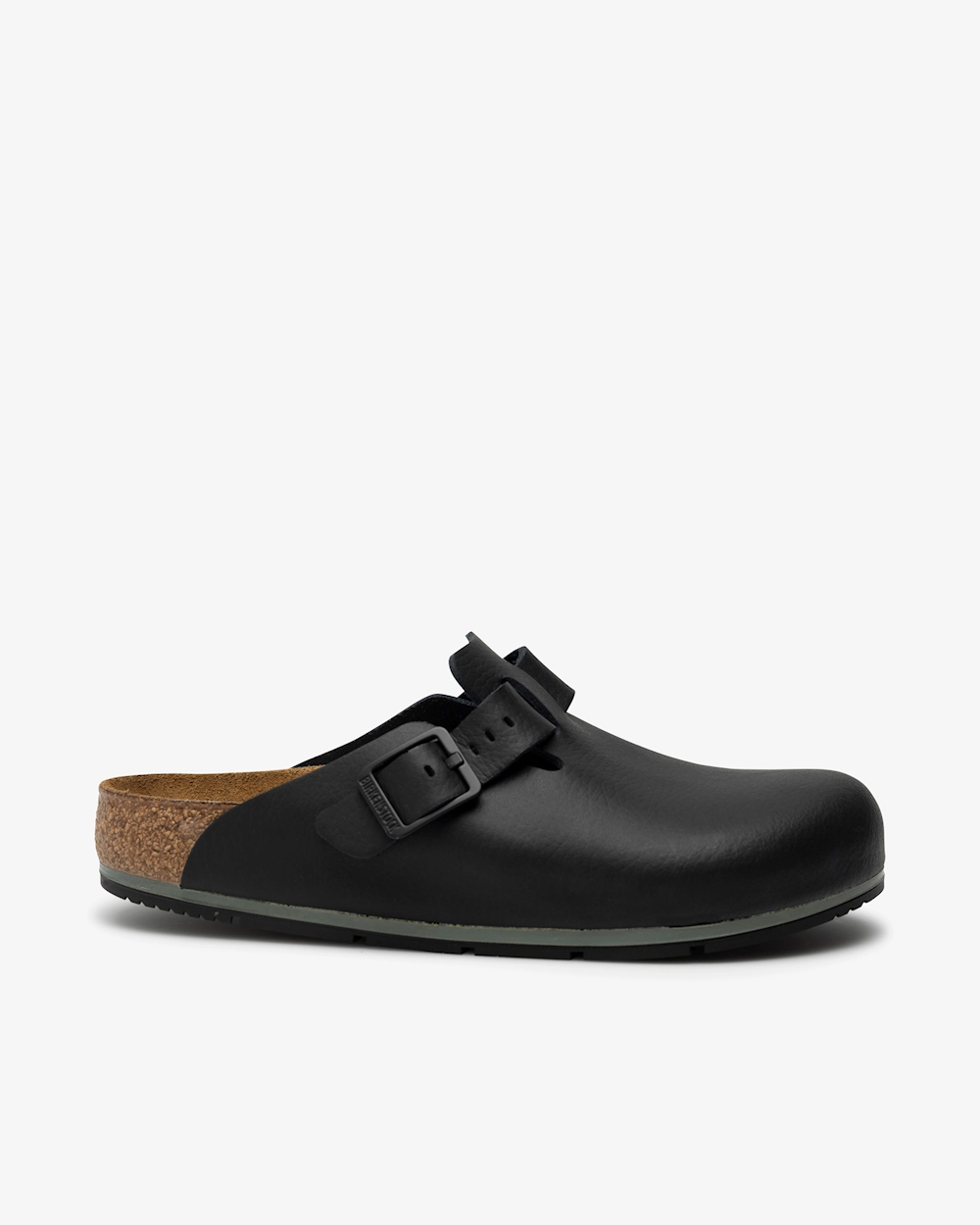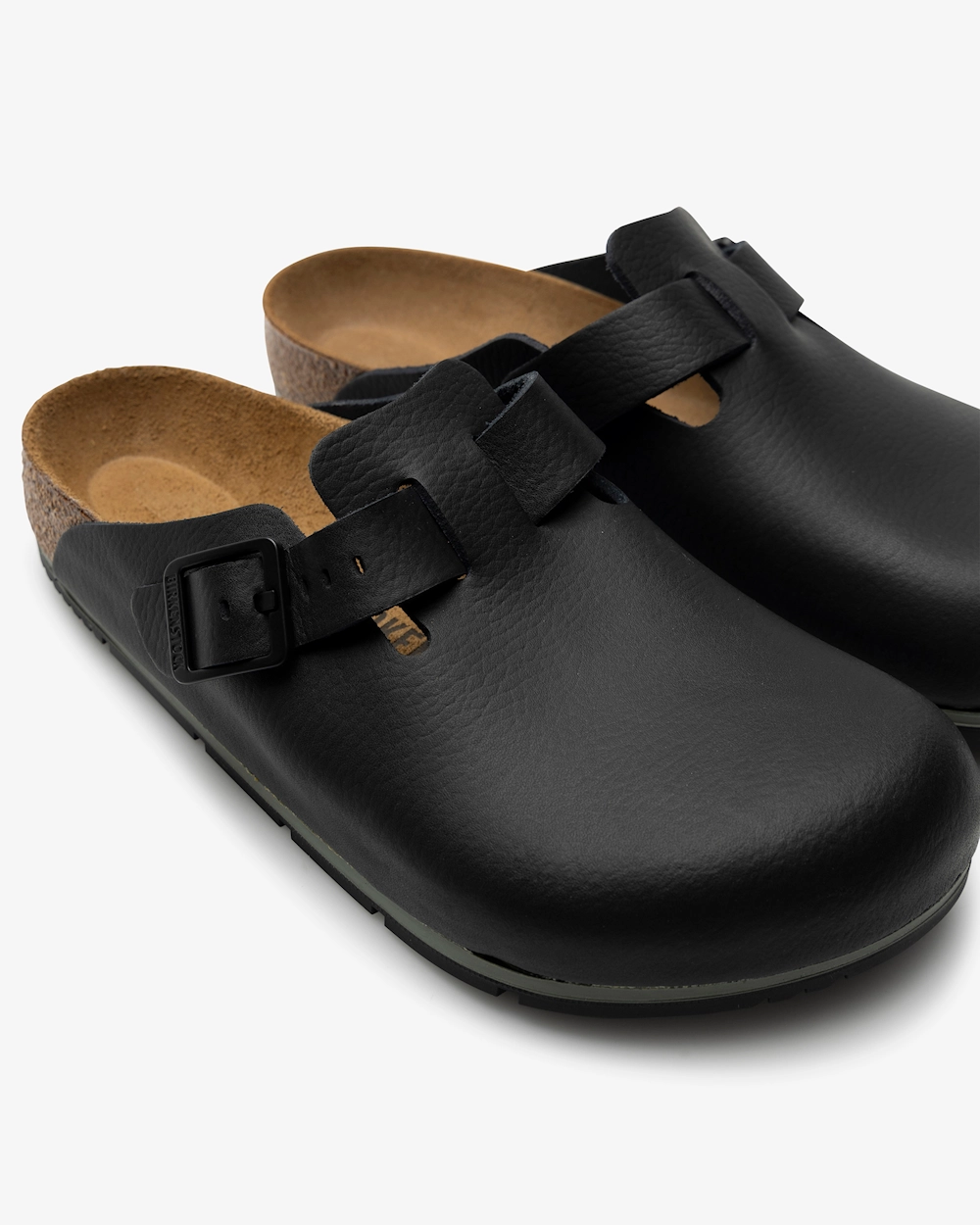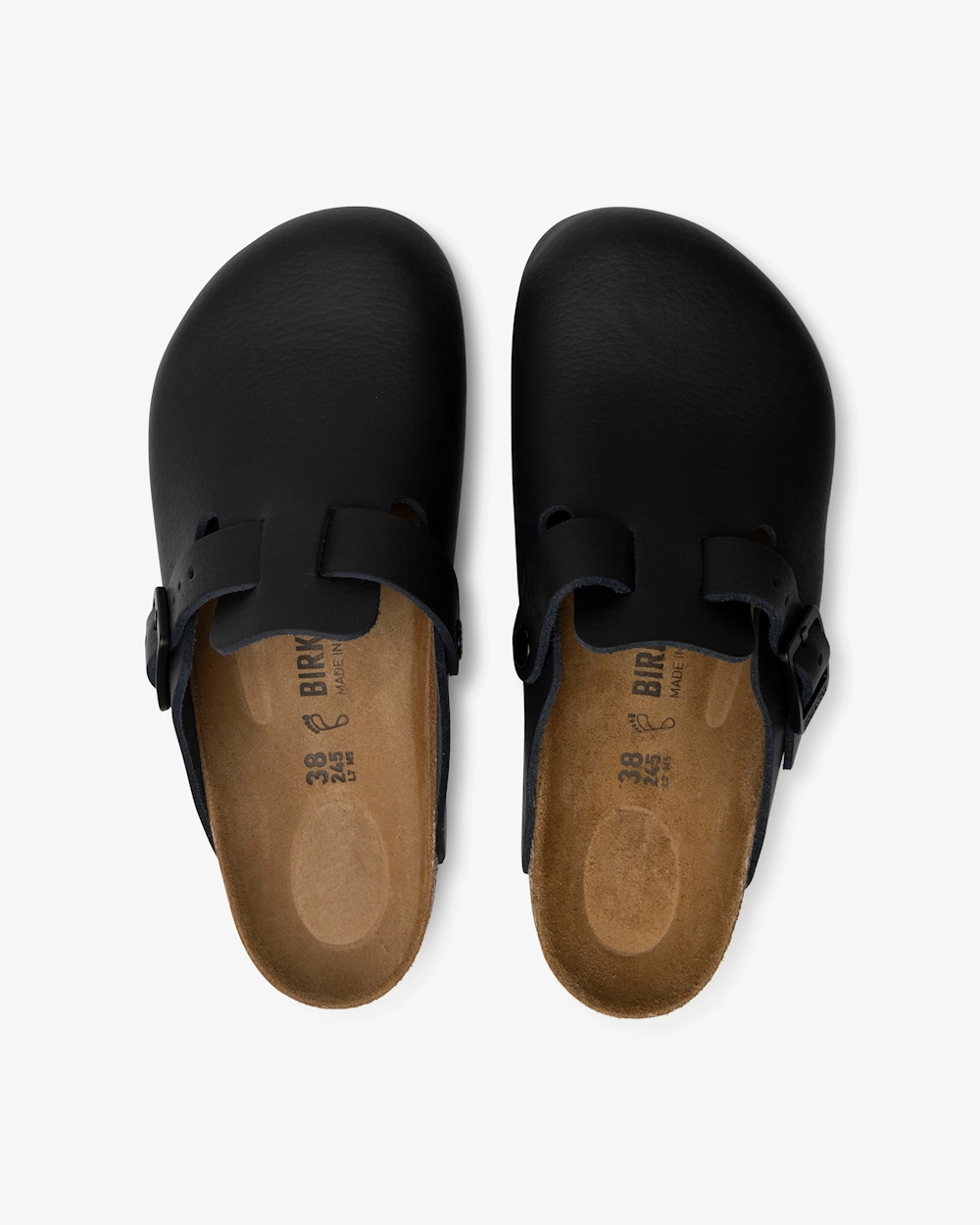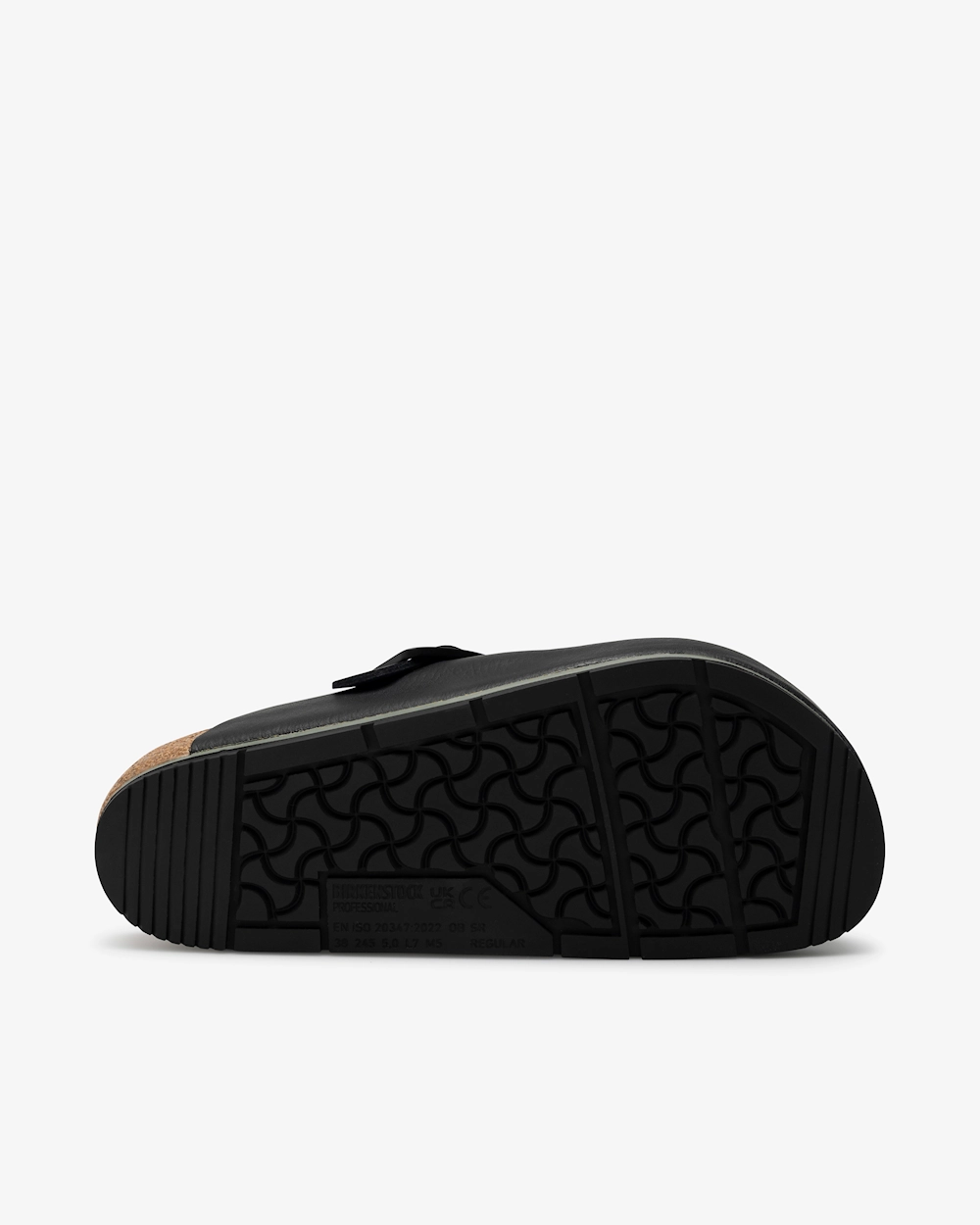 Birkenstock Boston PRO Regular är en professionell toffel som kombinerar komfort och funktionalitet. Anatomiskt formad kork-latex fotbädd ger optimal ergonomisk support, medan ovandelen av PU-belagt naturläder erbjuder hållbarhet. Den bekväma fotbädden av mocka och justerbara remmen säkerställer en perfekt passform. Polyuretanmellansulan och olje- och fettbeständig yttersula ger extra skydd och stabilitet, idealiska för hektiska dagar inom sjukvården.