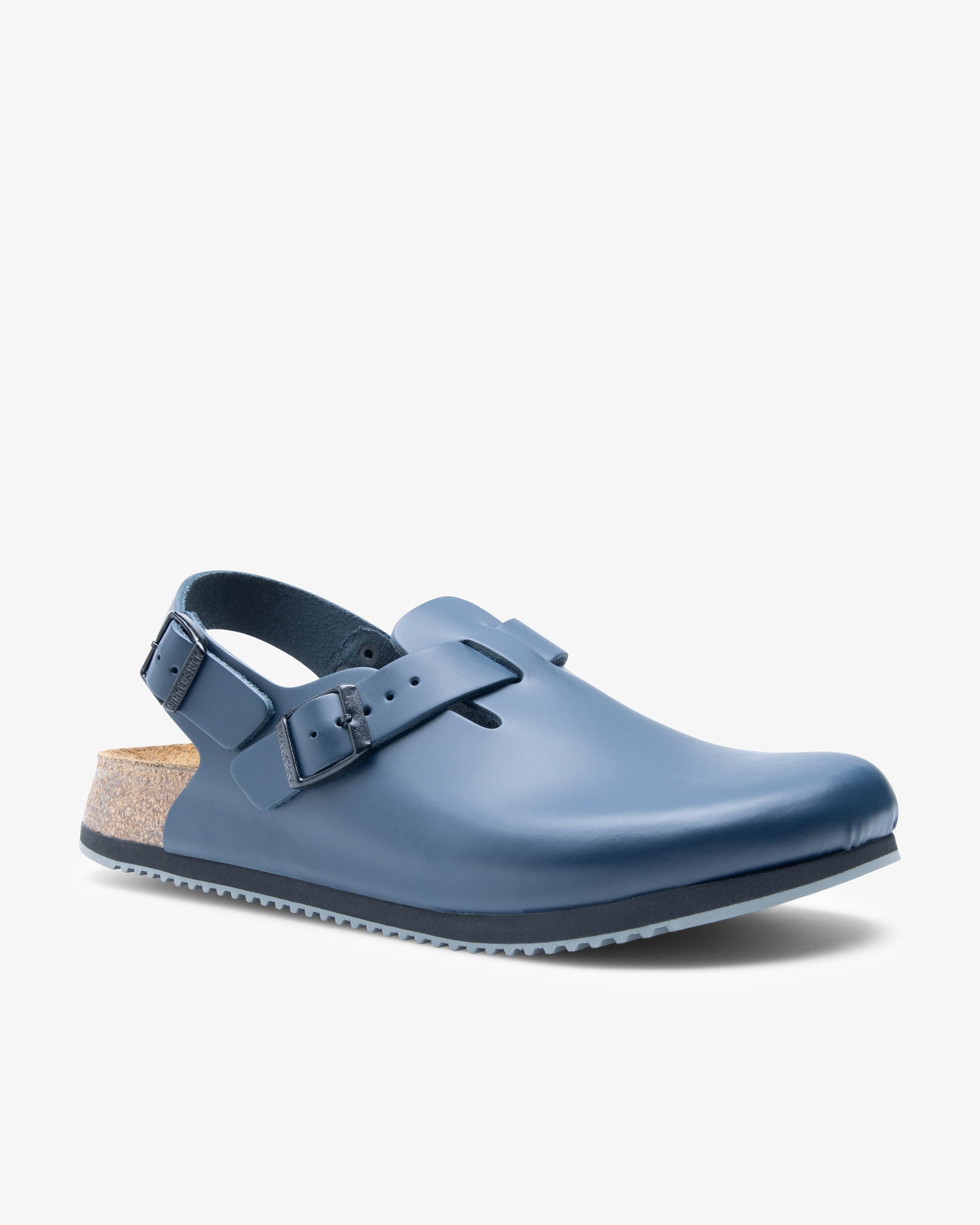 Birkenstock Professional Tokio Super Grip Regular är en bekväm arbetssko med anatomiskt utformad fotbädd och justerbara remmar för optimal passform. Den stötdämpande sulan med EVA-gummi gör varje steg mer bekvämt under långa arbetsdagar uppe på fötter. Super Grip-yttersulan är halksäker, fett- och oljebeständig och ger ett behagligt rundat steg.