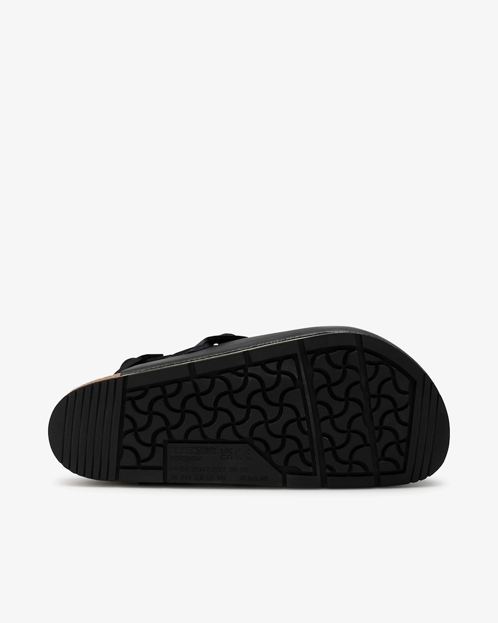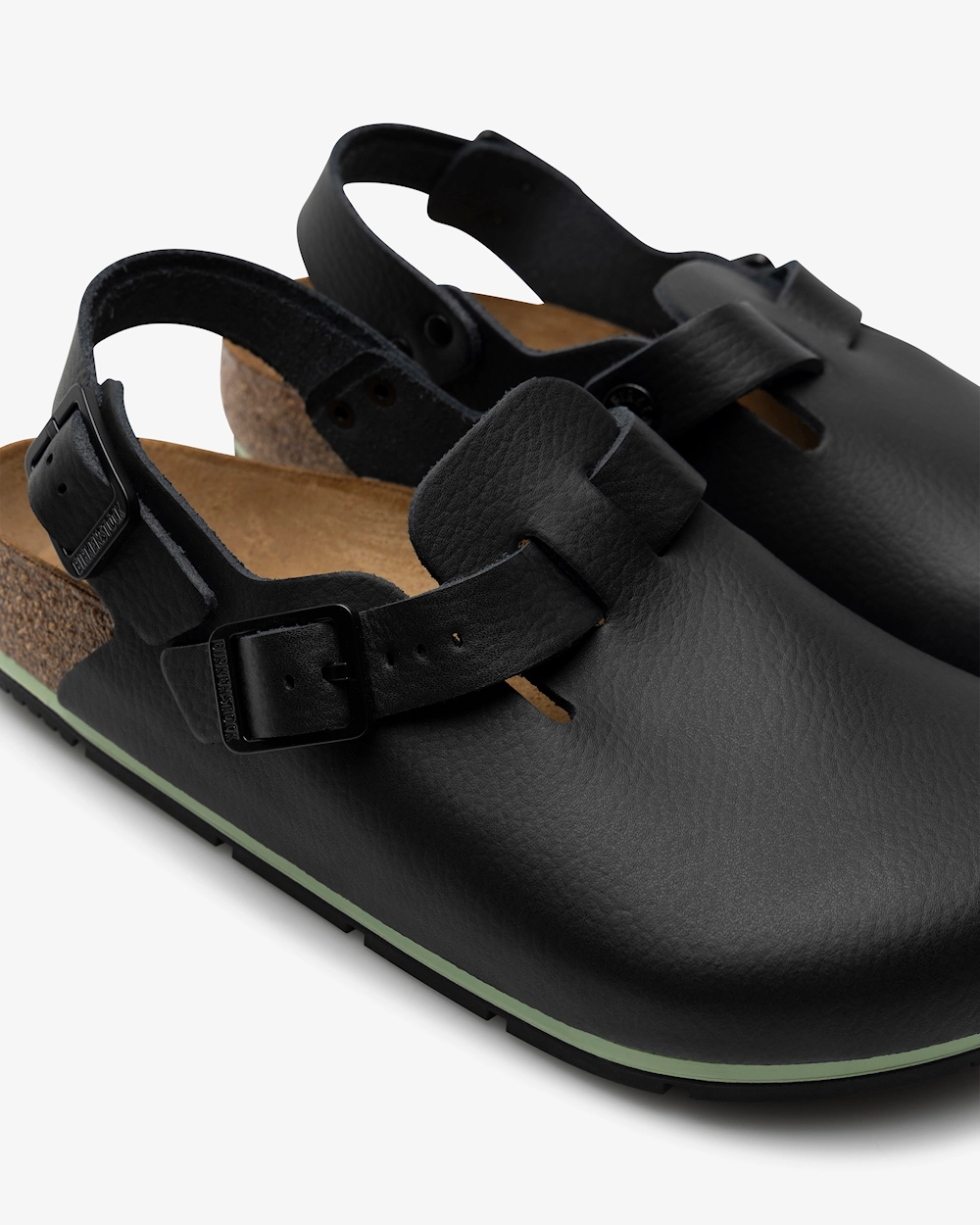 Tokio PRO sandalen från Birkenstock erbjuder en perfekt mix av komfort och säkerhet för vårdpersonal som värdesätter kvalitet och funktion. Den anatomiskt formade kork-latex fotbädden i mocka kombinerat med en dämpande EVA mellansula garanterar optimal komfort under långa arbetspass. Sandalens ovandel är tillverkad av PU-belagt naturläder för hållbarhet. Med en olje- och fettbeständig yttersula i gummi, samt justerbara remmar inklusive hälrem, är denna sko både praktisk och säker. Den halksäkra designen, testad enligt EN ISO 20347:2012 (SRA-kategori), gör den idealisk för arbetsmiljöer där säkerhet står i fokus.