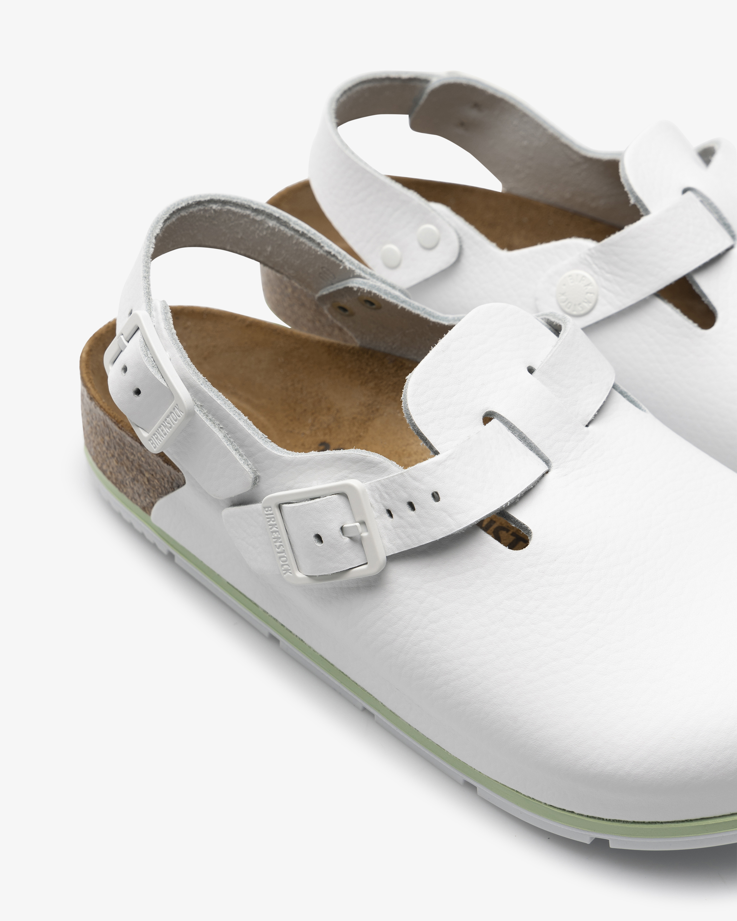 Tokio PRO sandalen från Birkenstock erbjuder en perfekt mix av komfort och säkerhet för vårdpersonal som värdesätter kvalitet och funktion. Den anatomiskt formade kork-latex fotbädden i mocka kombinerat med en dämpande EVA mellansula garanterar optimal komfort under långa arbetspass. Sandalens ovandel är tillverkad av PU-belagt naturläder för hållbarhet. Med en olje- och fettbeständig yttersula i gummi, samt justerbara remmar inklusive hälrem, är denna sko både praktisk och säker. Den halksäkra designen, testad enligt EN ISO 20347:2012 (SRA-kategori), gör den idealisk för arbetsmiljöer där säkerhet står i fokus.