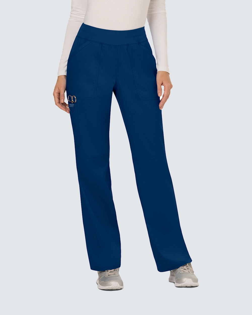 Den moderna arbetsbyxan med rak passform erbjuder en kombination av stil och funktion. Byxan har en normalhög midja med en bred stickad mudd och förstärkt resår som ger en bekväm passform.