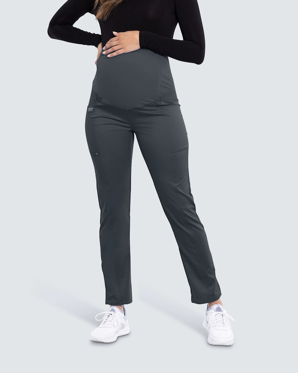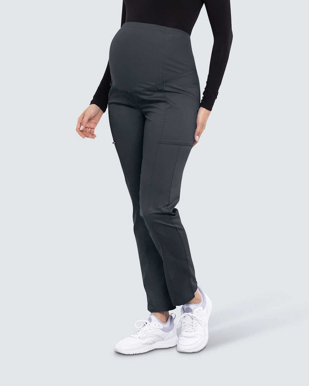 Mammabyxa i pull-on-modell med rakt ben, framtagen för att ge stöd och komfort under graviditet. En mjuk stickad panel över magen säkerställer optimal passform hela dagen. Praktiska öglor vid midja och ben gör det enkelt att fästa monitorer. Tre fickor, inklusive två benfickor samt en med blixtlås på höger sida, ger smart förvaring.
