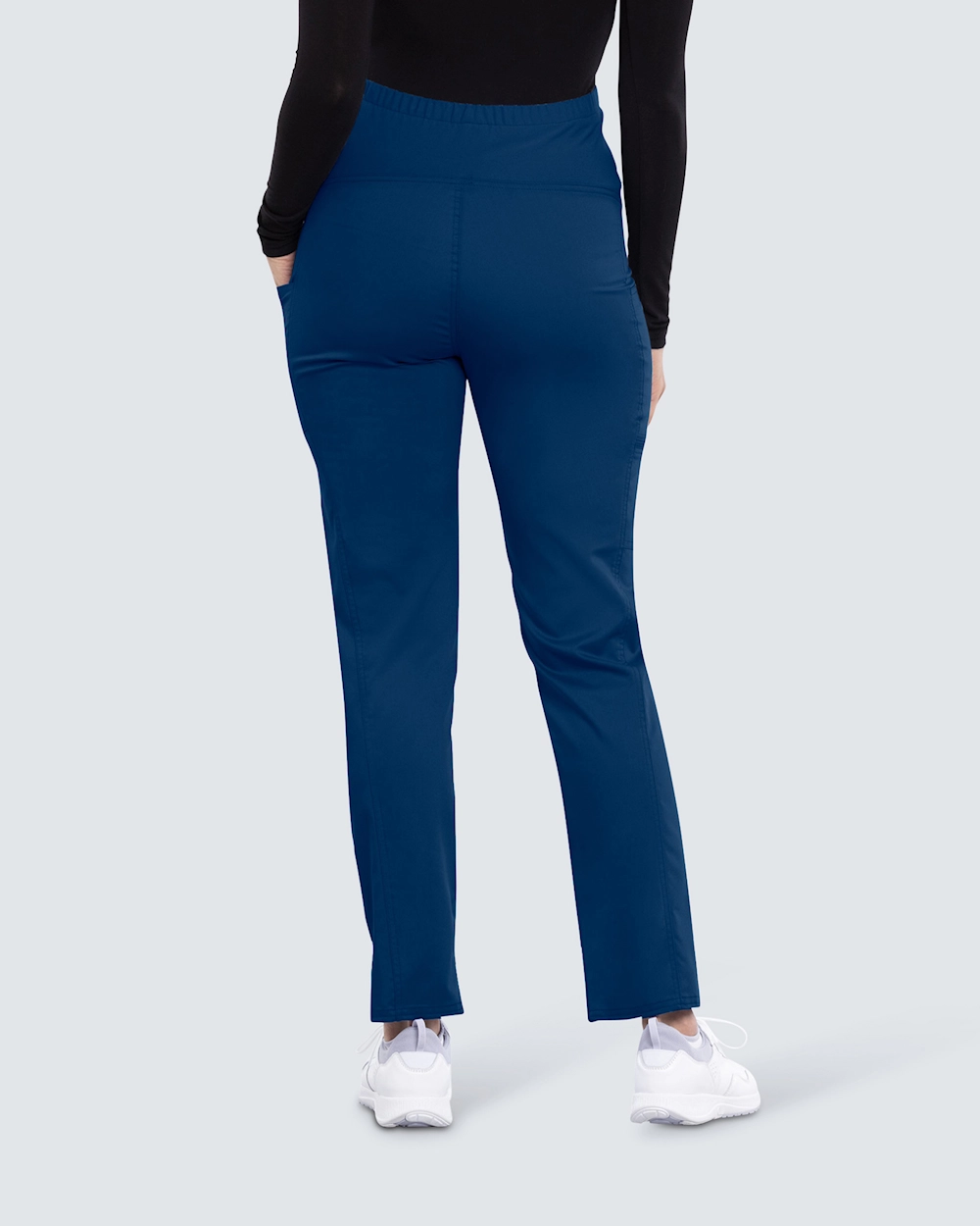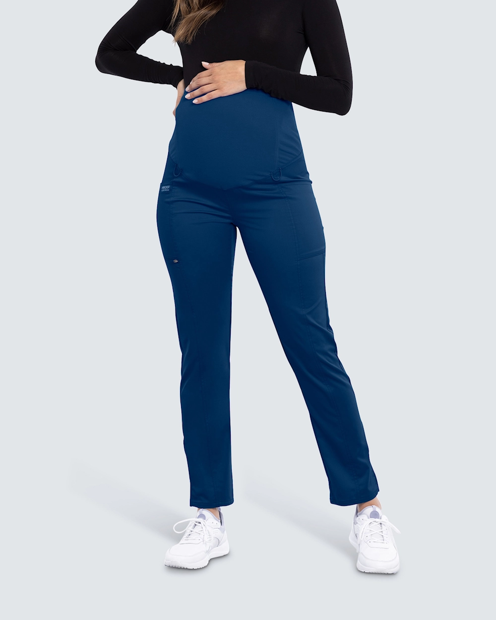 Mammabyxa i pull-on-modell med rakt ben, framtagen för att ge stöd och komfort under graviditet. En mjuk stickad panel över magen säkerställer optimal passform hela dagen. Praktiska öglor vid midja och ben gör det enkelt att fästa monitorer. Tre fickor, inklusive två benfickor samt en med blixtlås på höger sida, ger smart förvaring.