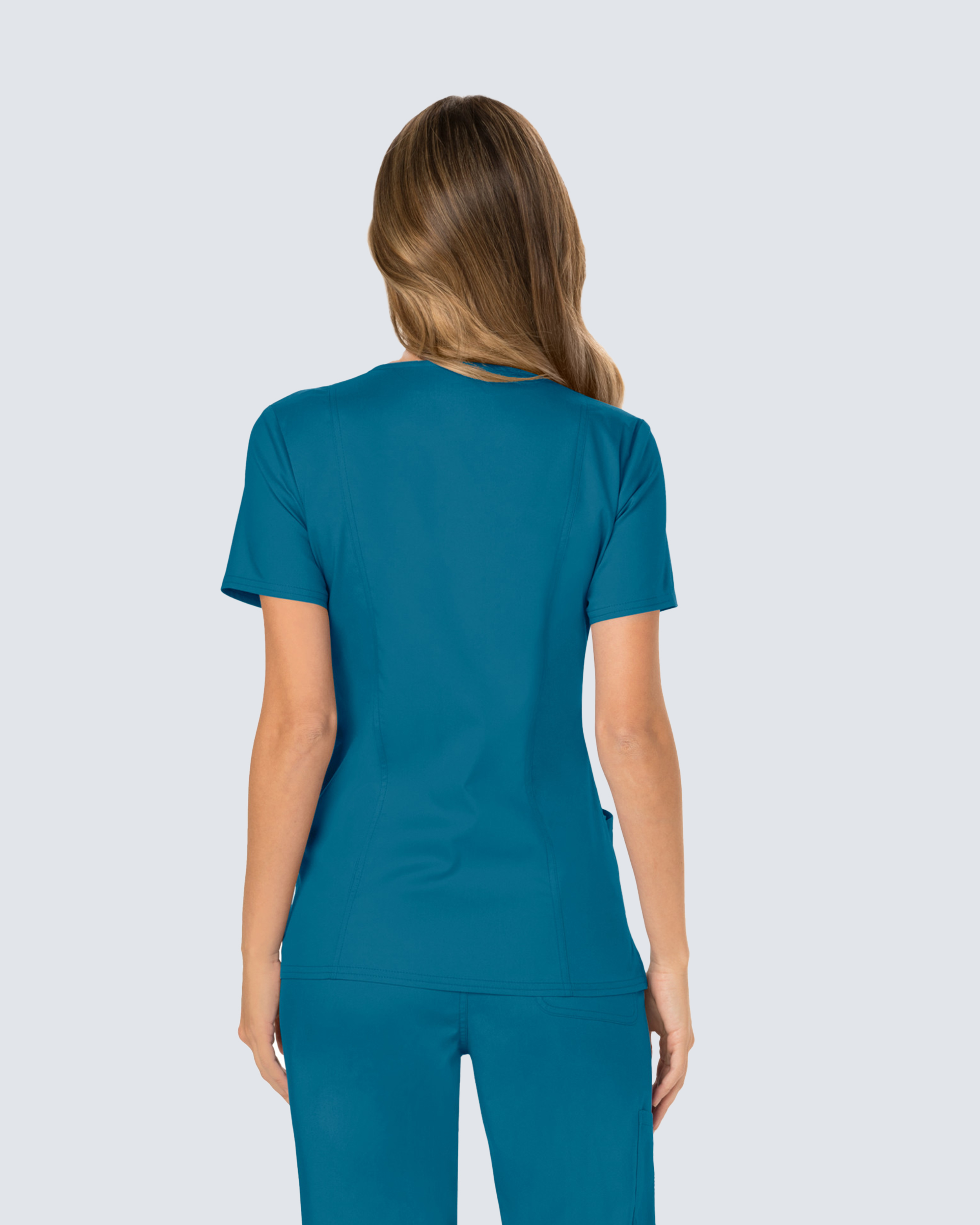 Mjuk tunika i omlottmodell erbjuder både stil och komfort på jobbet.