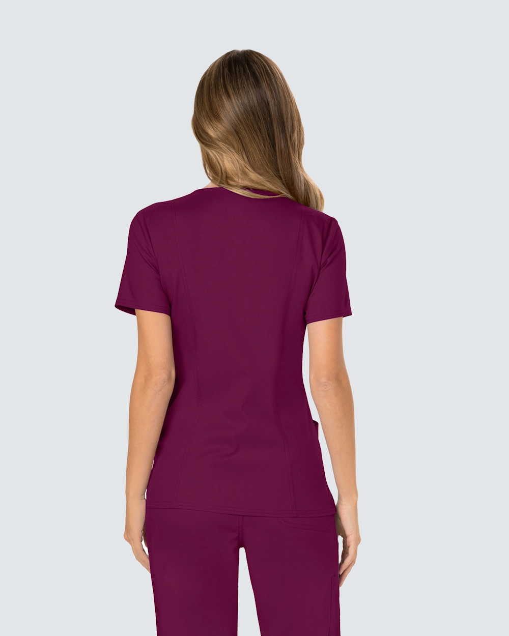 Mjuk tunika i omlottmodell erbjuder både stil och komfort på jobbet.