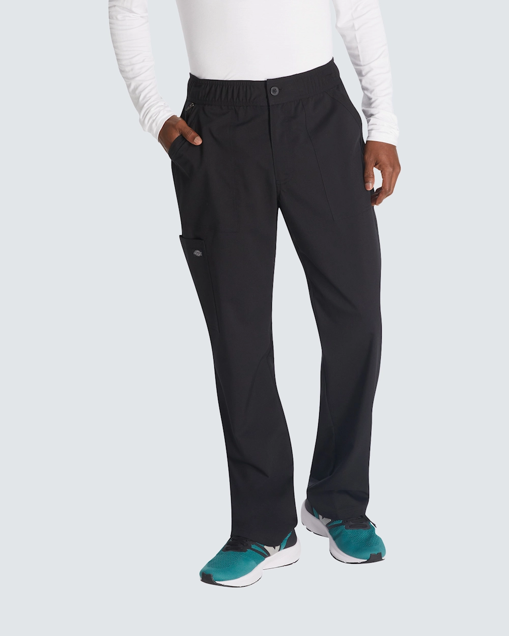 Dickies herrbyxa med rak passform och normalhög midja erbjuder både stil och funktionalitet för vårdpersonal. Resår och dragsko på insidan av midjan ger en flexibel passform som ska passa alla.