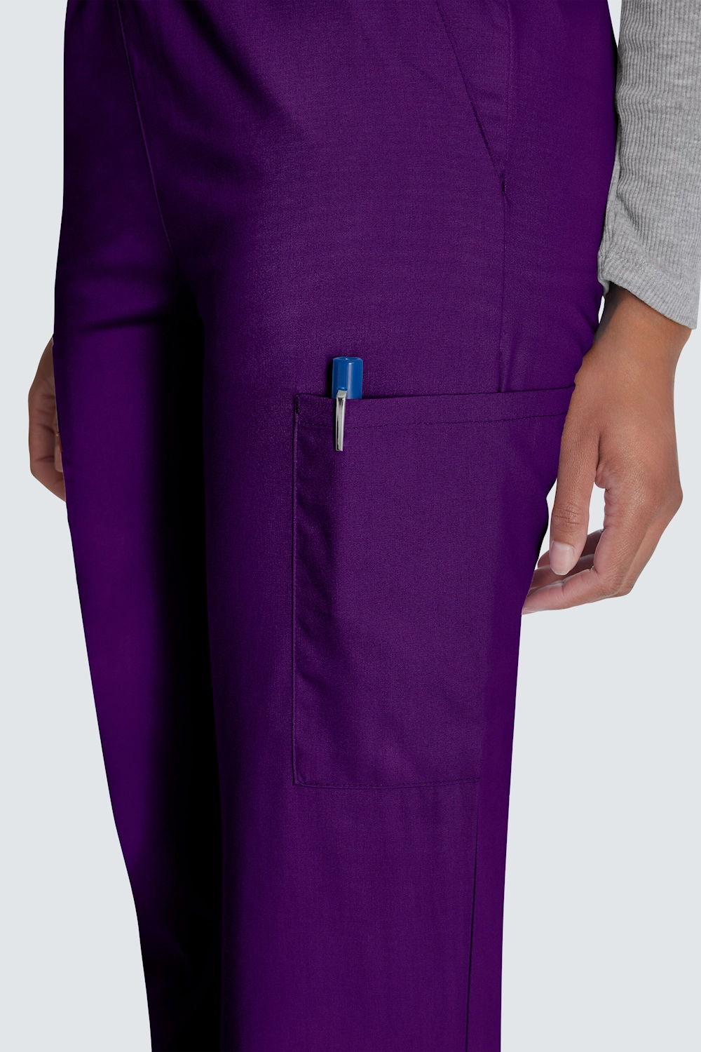En modern arbetsbyxa med avsmalnande passform och normalhög midja. Pull-on-modell med resår för komfort och flexibilitet. Byxan har praktiska detaljer som en hälla för nycklar samt en stretchig dold innerficka.