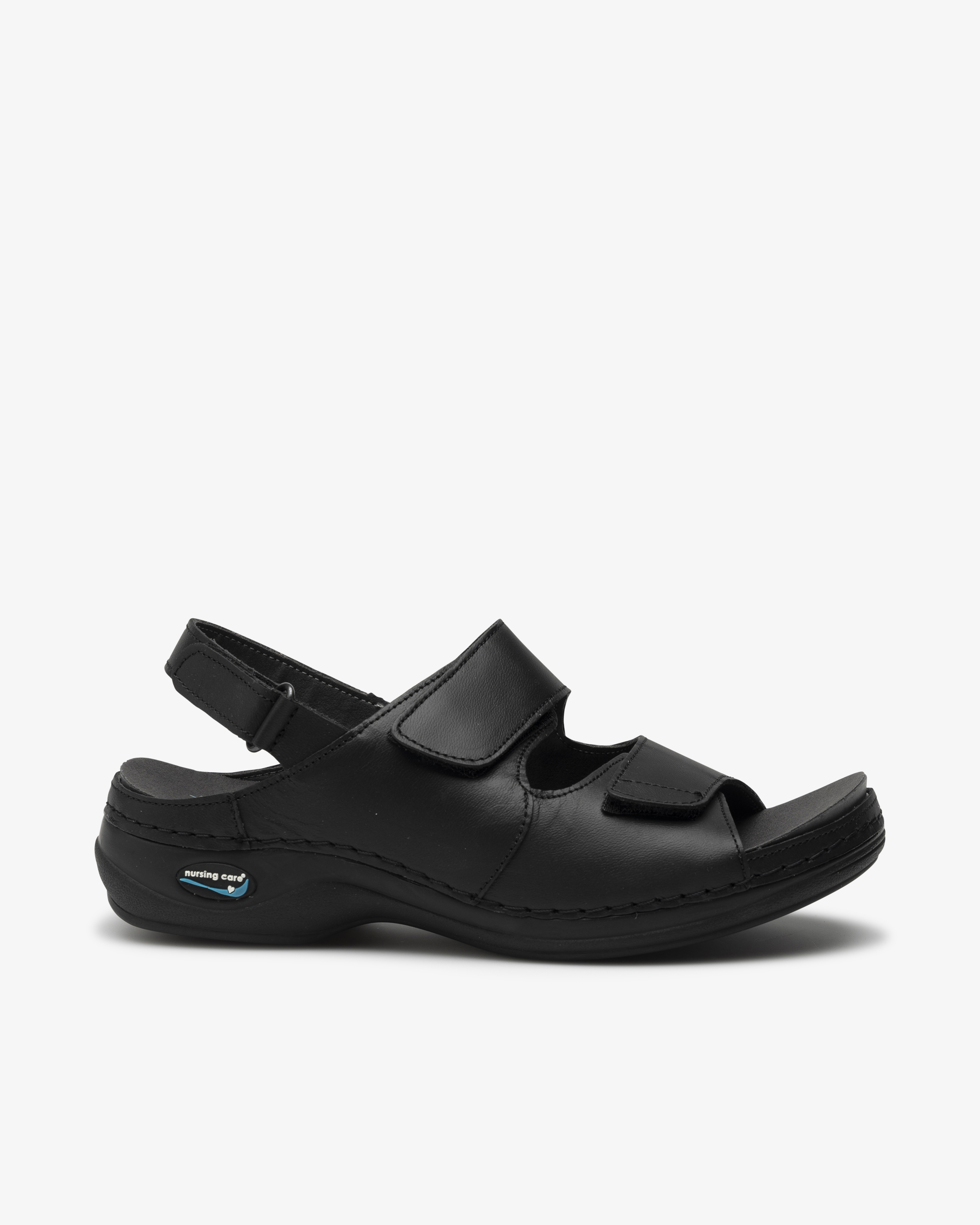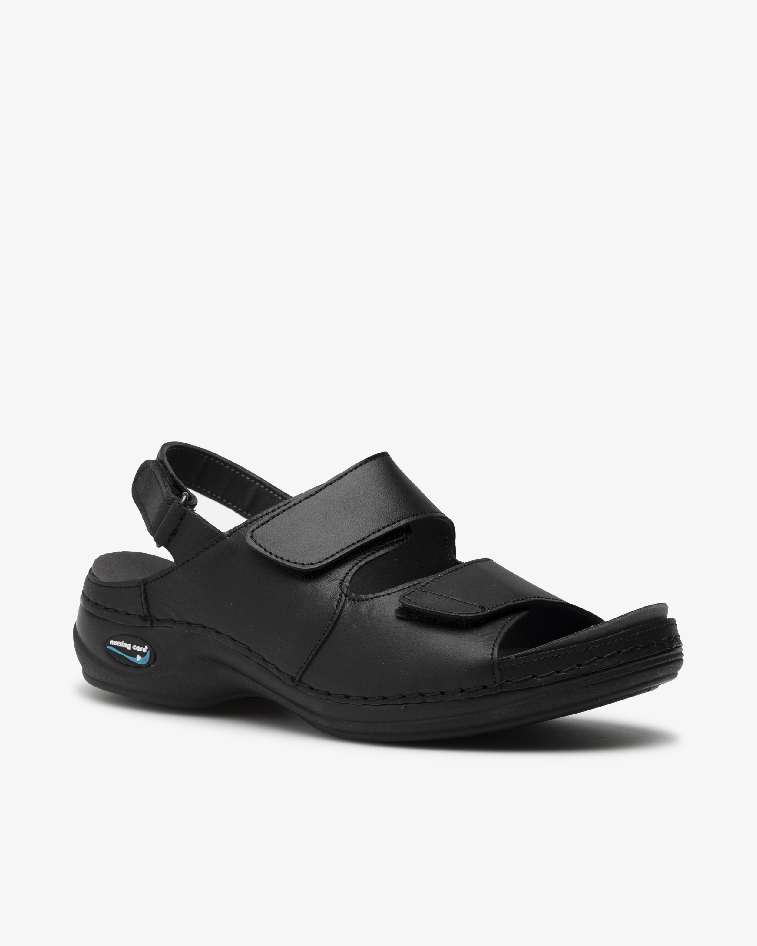 Skinnsandal i dammodell med utbytbar, ergonomiskt uppbyggd fotbädd. Sandalen kan maskintvättas i upp till 30⁰C för att upprätthålla god hygien i vårdmiljöer. Halkfri yttersula som greppar bra mot underlaget och antistatiska egenskaper som skyddar dig mot statisk elektricitet. Tre justerbara remmar med kardborre, två upptill och en baktill, för optimal passform.