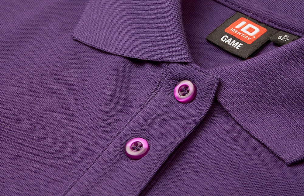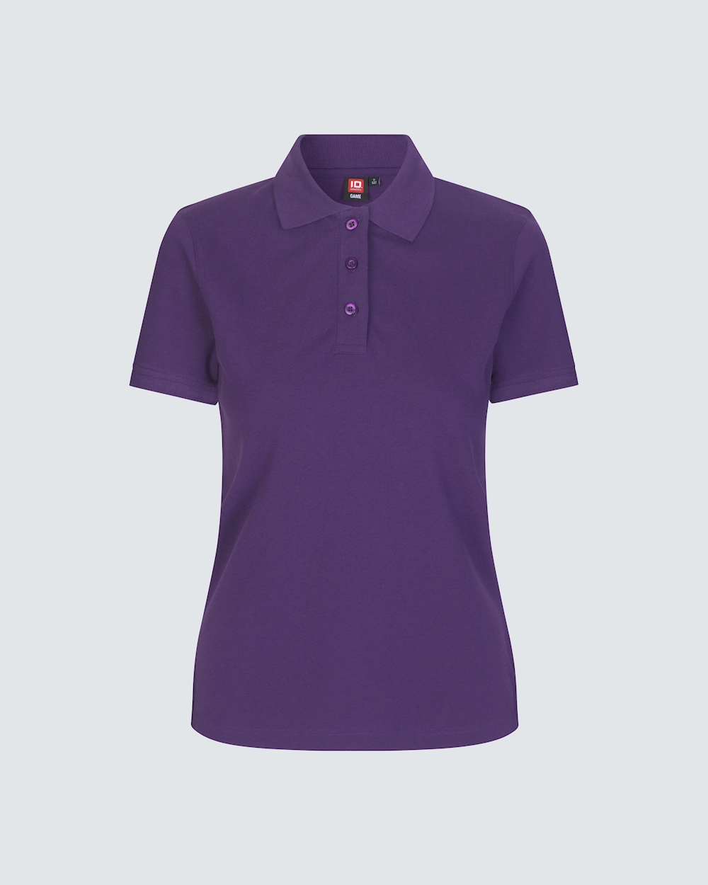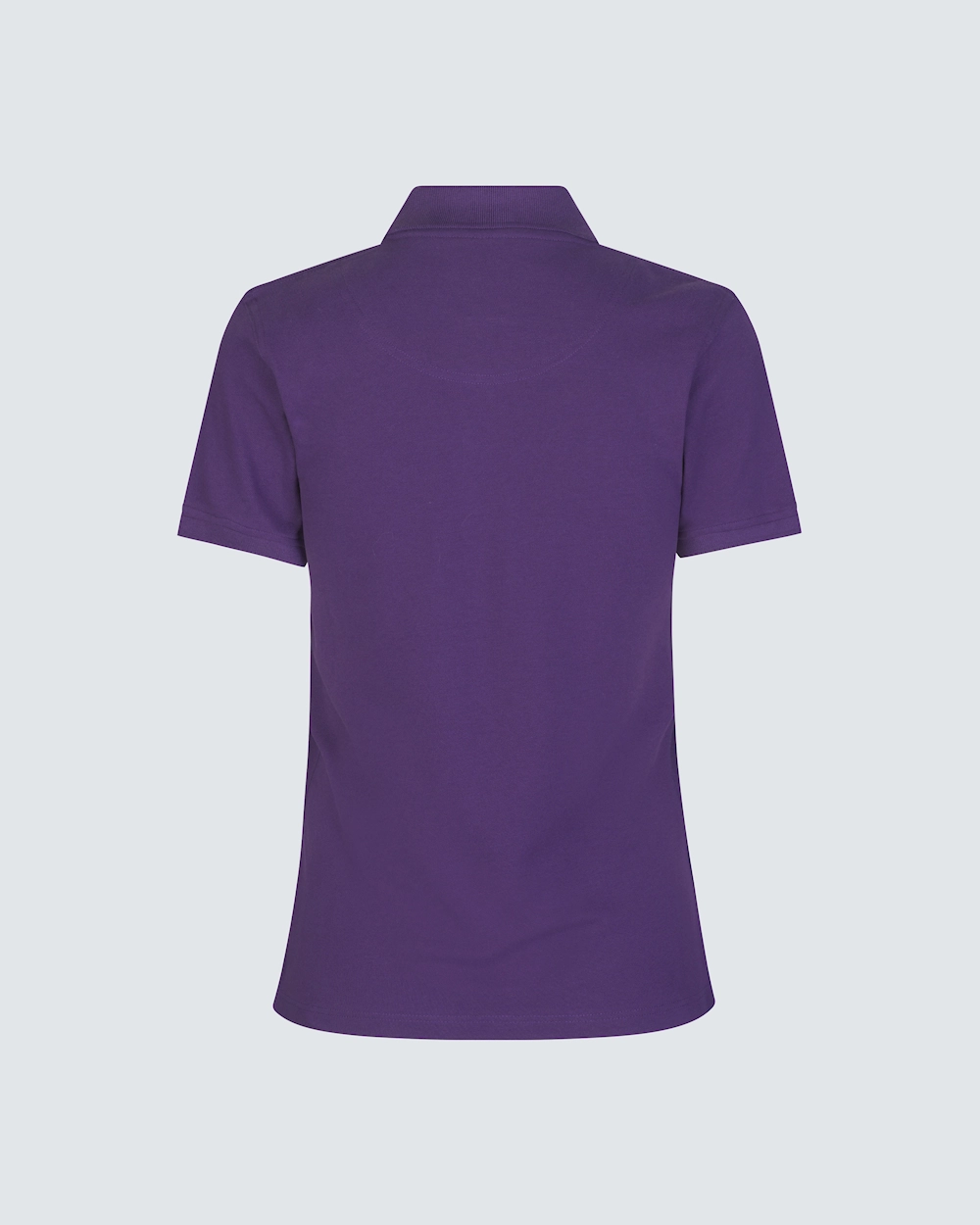 Denna lätt insvängda pikétröja för dam har stretchigt material och sprund i sidorna. Stilrena ton-i-ton knapparna mitt fram.