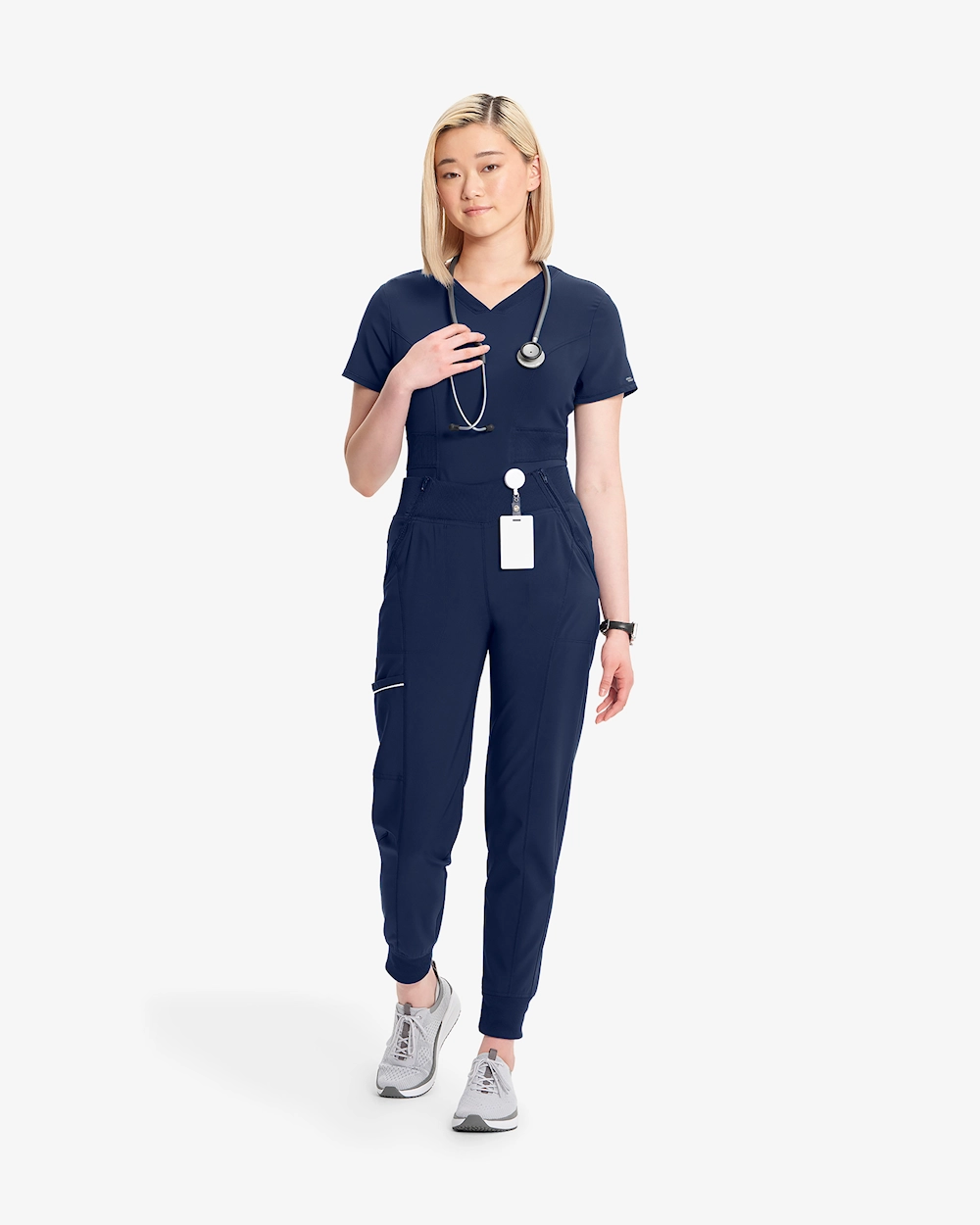 Joggerbyxan är designad för vårdpersonal som söker både komfort och funktionalitet. Med medelhög midja, ribbstickat elastiskt midjeband och justerbar benslutslängd ger denna arbetsbyxa flexibel passform hela dagen. Utrustad med flera fickor, reflexband för extra synlighet och dekorativa sömmar för en modern look. Stretchpoplin och superstretchig ribbstickning kombineras med PROTX2-teknologi som effektivt transporterar bort fukt och kontrollerar odör.