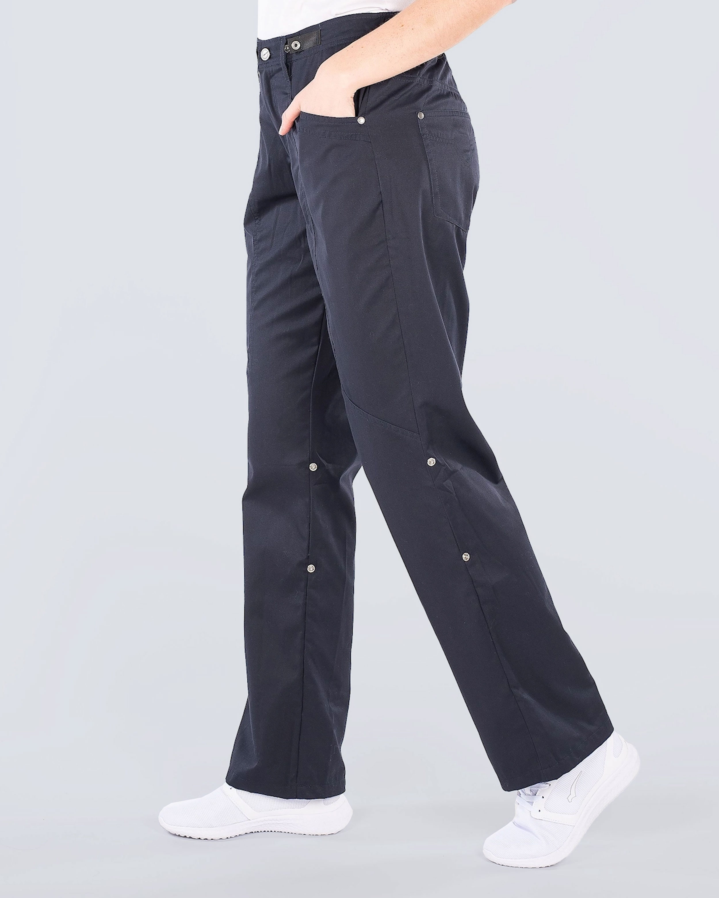 - Justerbar längd i tre nivåer, med tryckknappar, på byxbenen