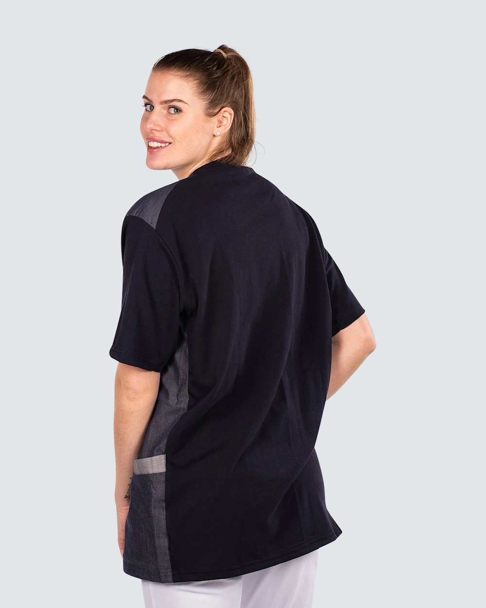 Bekväm bussarong i trikå som ger en följsam och stretchig kvalitet. Bussarongen har höftfickor som är ergonomiskt placerade för långa arbetsdagar med fickorna fyllda av diverse arbetsredskap, pennor eller block. Placeringen på höftfickorna ger dessutom plagget en fin silhuett.