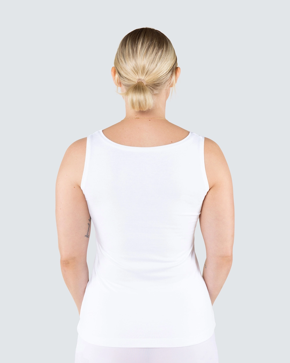 Mjukt och följsamt linne med figurnära passform och breda axelband som sitter bekvämt på axlarna utan att skava. Dekorativ, rund halsringning. Tack vare bambuns runda och lena fibrer sitter linnet skönt även på känslig hud. Bambu har även fukt- och temperaturreglerande egenskaper som gör materialet väl lämpat för underkläder och basplagg.