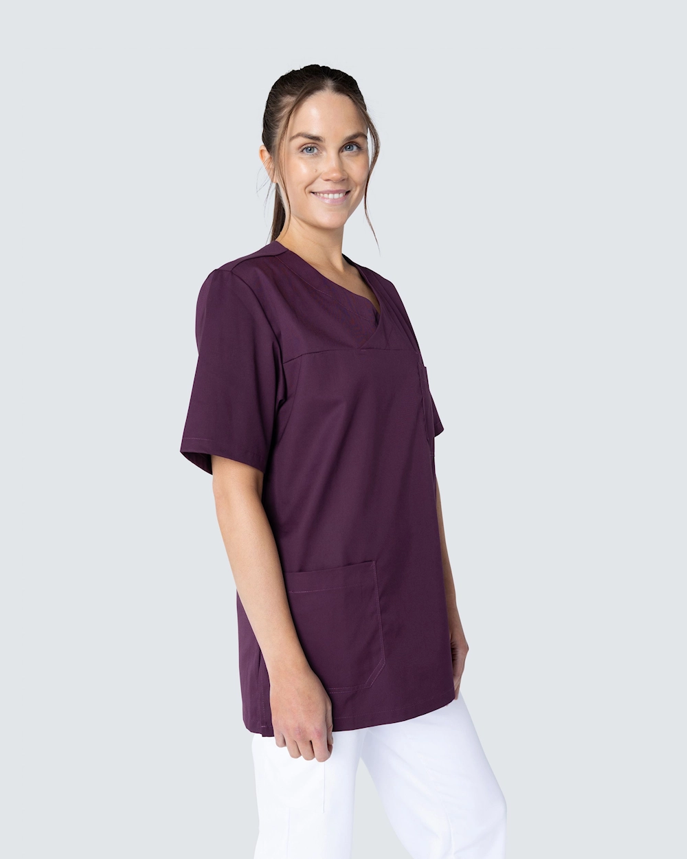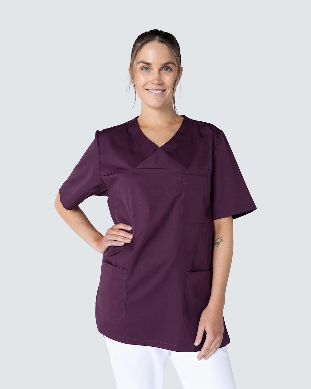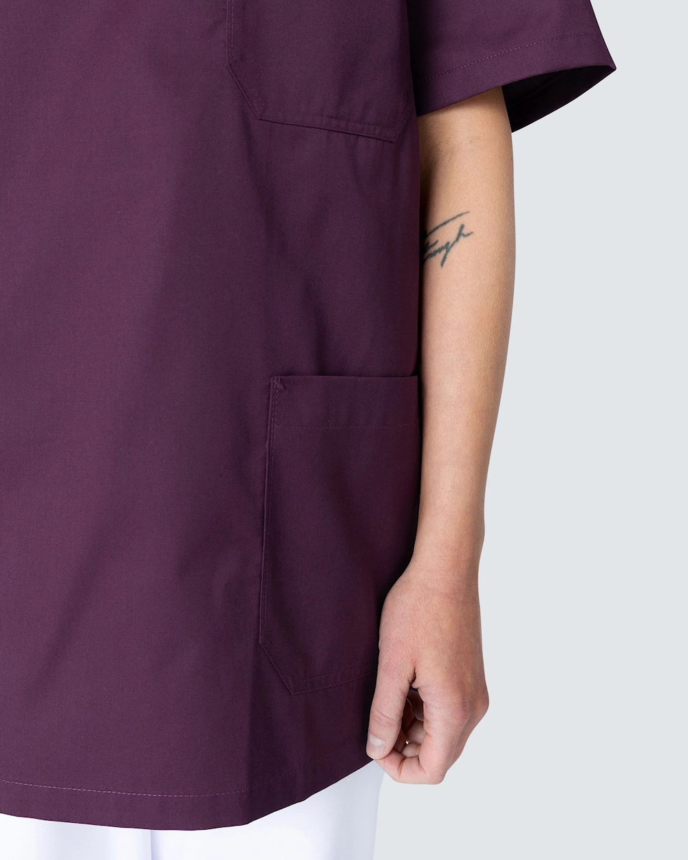 Praktisk vårdbussarong i skönt material och flera praktiskt detaljer. Bussarongen är tillverkad i en rak unisexmodell och har också justerbar midja där du med elastiskt band och knappar kan justera bussarongen till en mer figursydd passform. Bussarongen har slits vid sidorna för optimal komfort och rörelsefrihet samt rymliga fickor med både extra mobilfickor och nyckelband.
