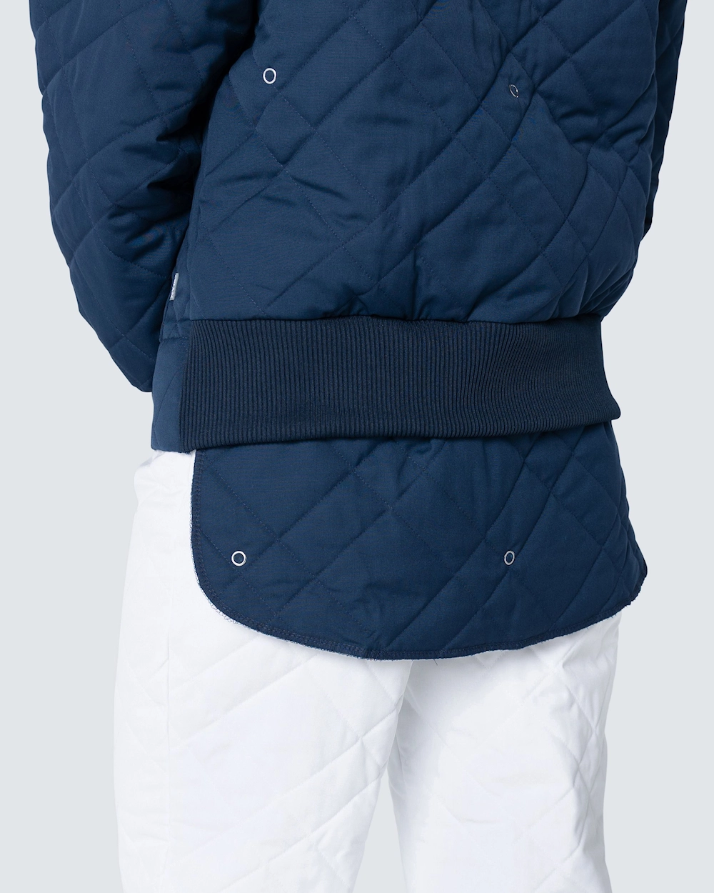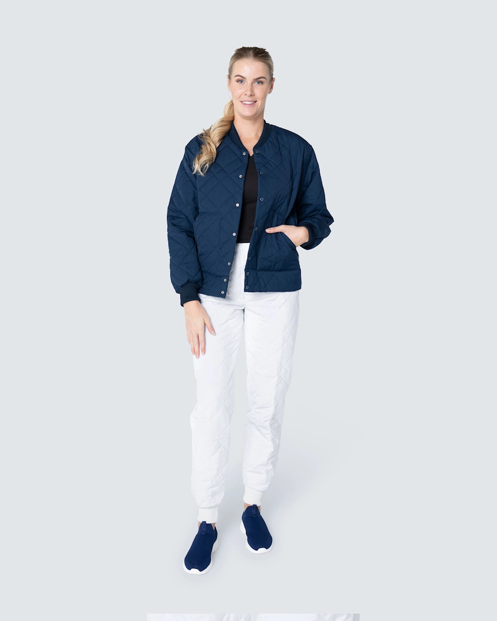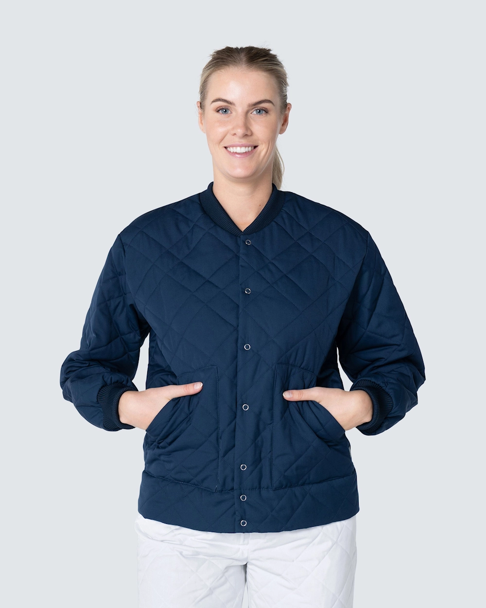 Quiltad termojacka i unisexmodell med två rymliga höftfickor och en innerficka. Jackan har en funktionell rygglapp som kan stoppas ner i byxorna för att stänga ute kylan. Stängning med tryckknappar och mudd i ärmslut och i halsringning.