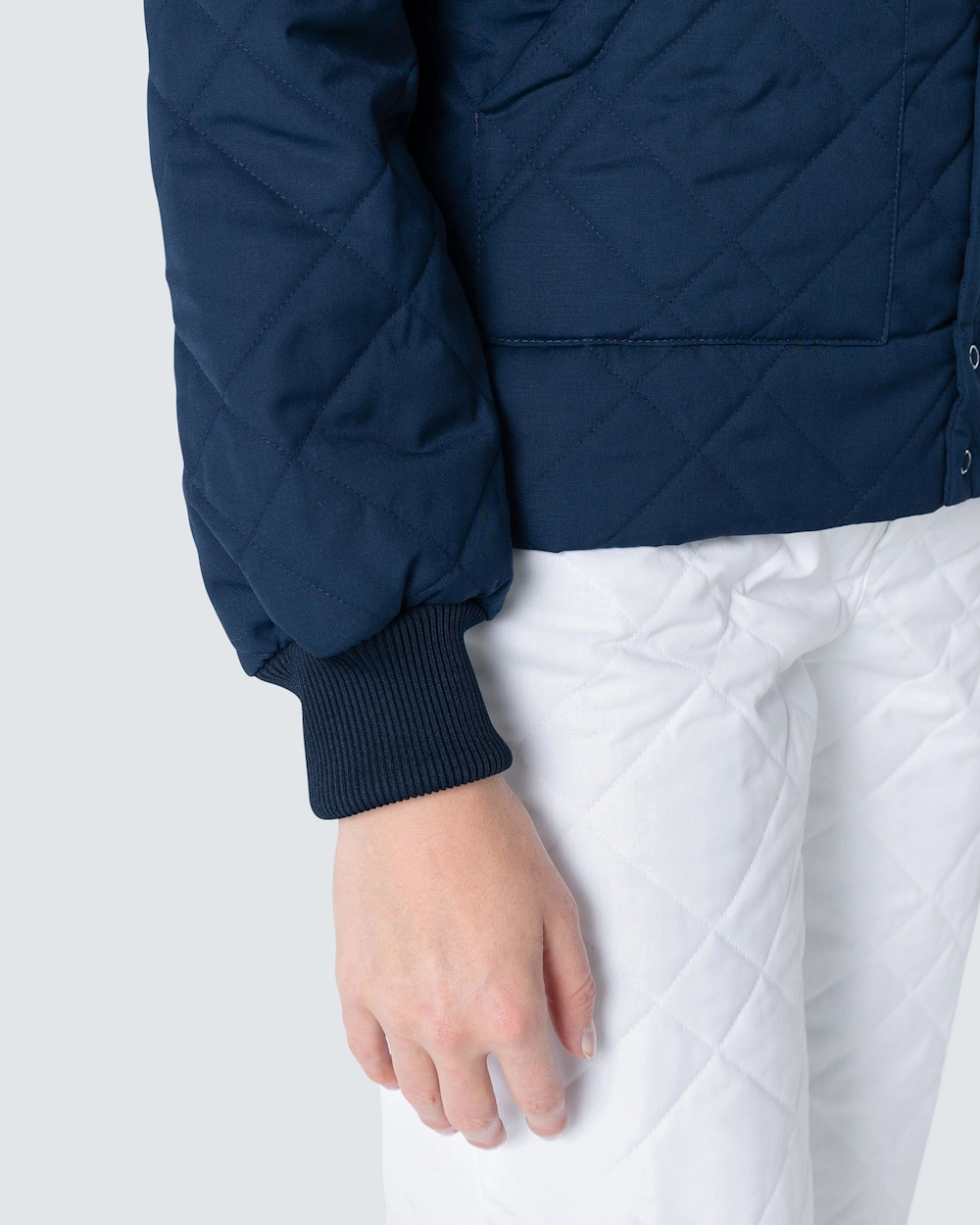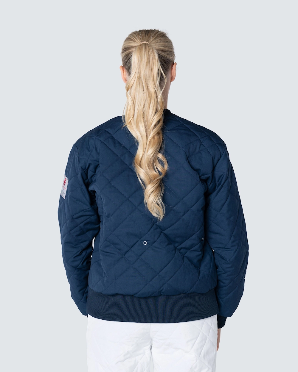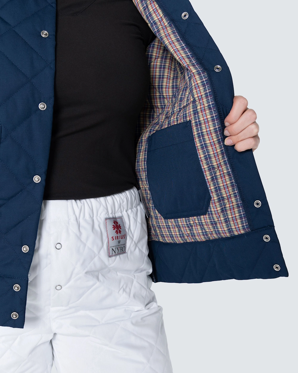 Quiltad termojacka i unisexmodell med två rymliga höftfickor och en innerficka. Jackan har en funktionell rygglapp som kan stoppas ner i byxorna för att stänga ute kylan. Stängning med tryckknappar och mudd i ärmslut och i halsringning.