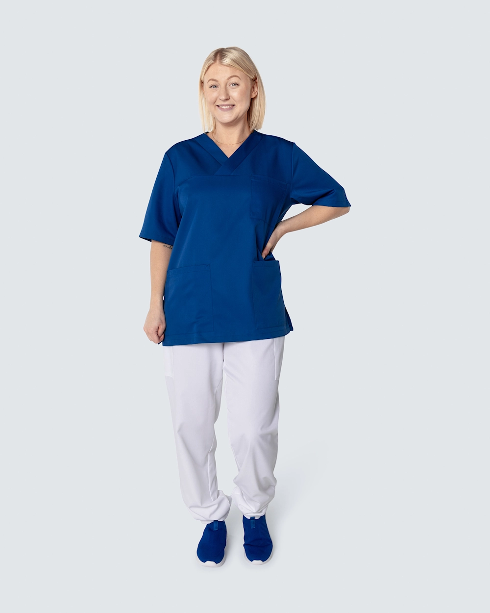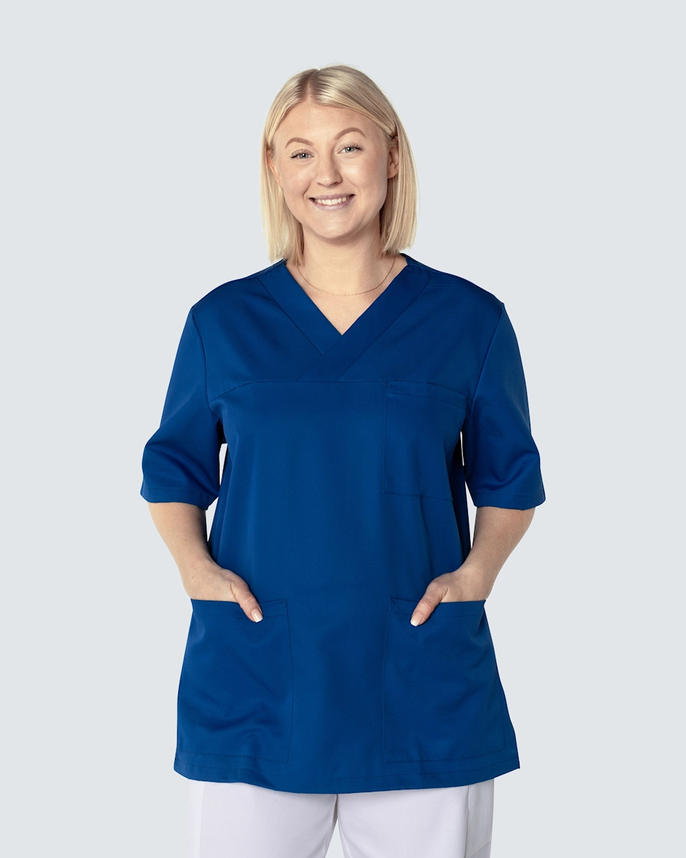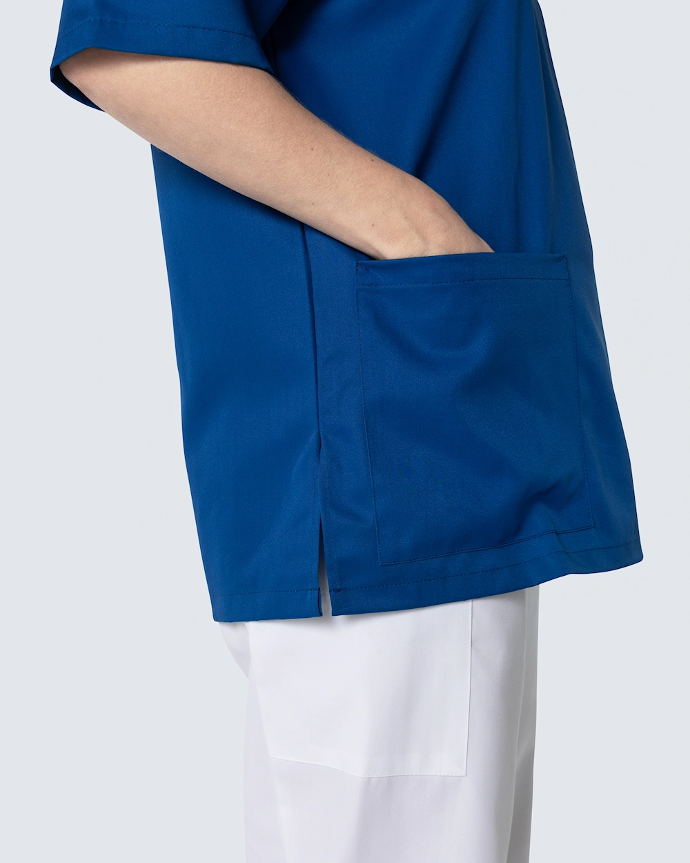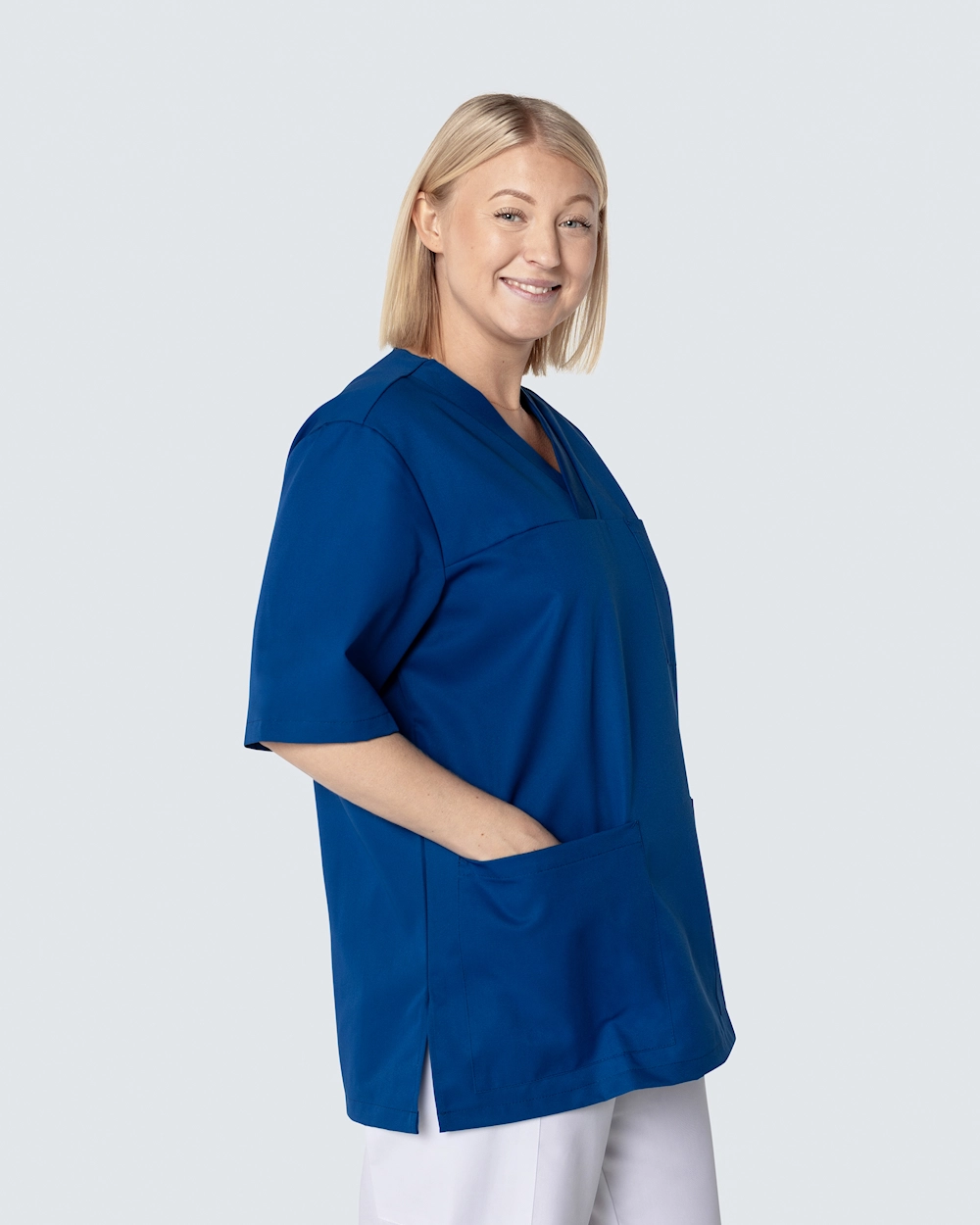 Bussarong i unisexmodell med avslappnad, rymlig passform och sportigt utseende. Plagget har en generös längd och slitsar i sidorna för optimal rörelsefrihet. Bröstficka och två rymliga höftfickor, varav en har mindre innerficka för exempelvis mobiltelefon eller mindre hjälpmedel. Bussarongen har hög andningsförmåga och är tillverkad i slitstark och temperaturreglerande Tencel, ett material som sitter behagligt mot kroppen.