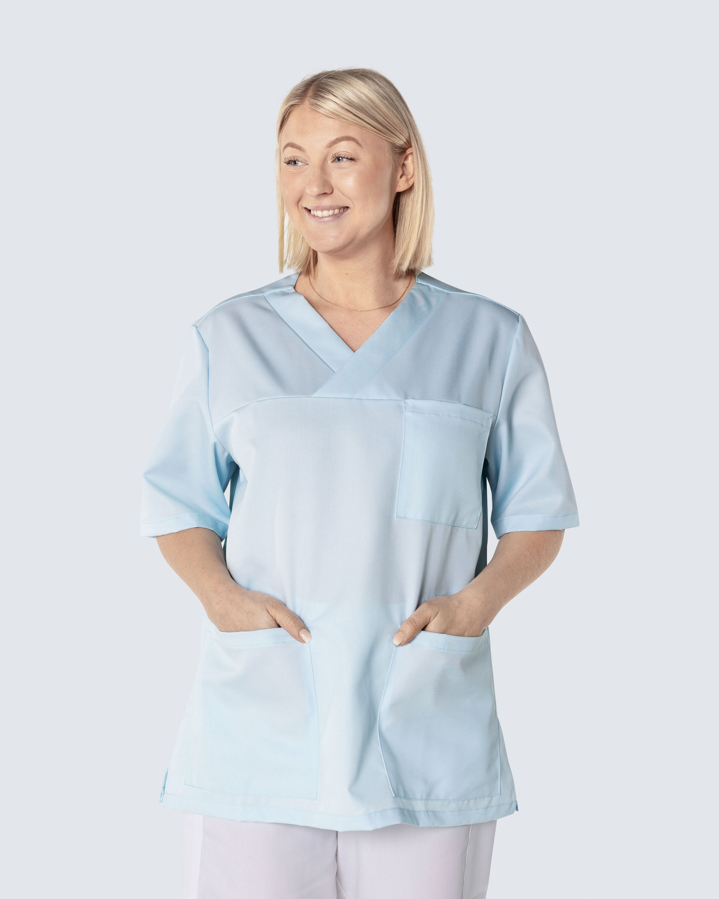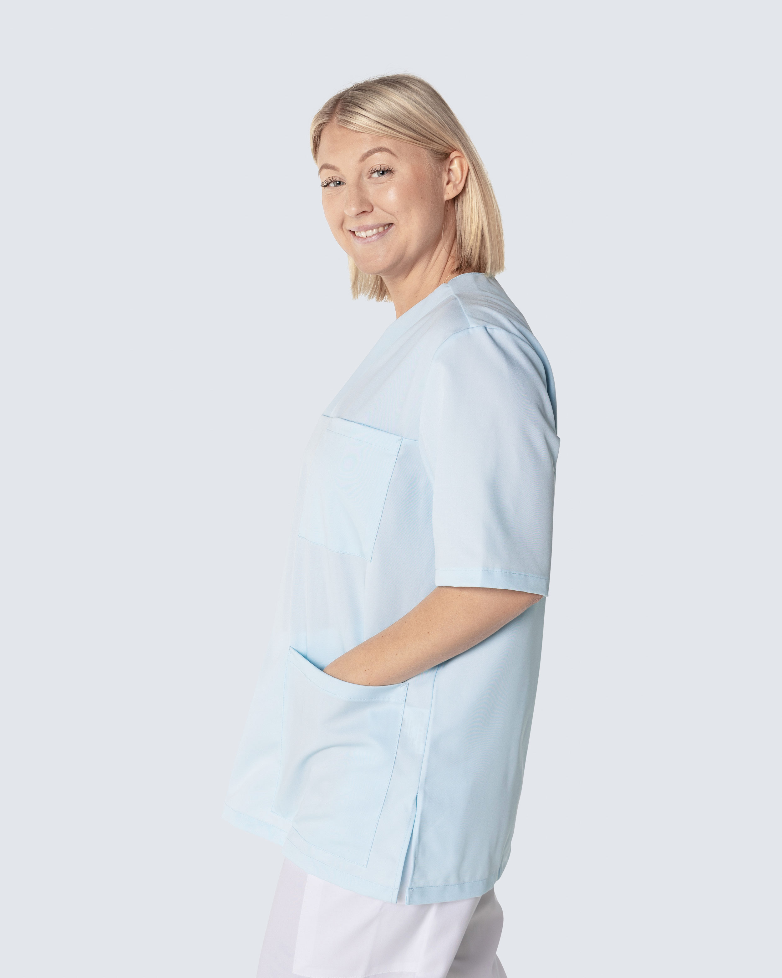 Bussarong i unisexmodell med avslappnad, rymlig passform och sportigt utseende. Plagget har en generös längd och slitsar i sidorna för optimal rörelsefrihet. Bröstficka och två rymliga höftfickor, varav en har mindre innerficka för exempelvis mobiltelefon eller mindre hjälpmedel. Bussarongen har hög andningsförmåga och är tillverkad i slitstark och temperaturreglerande Tencel, ett material som sitter behagligt mot kroppen.