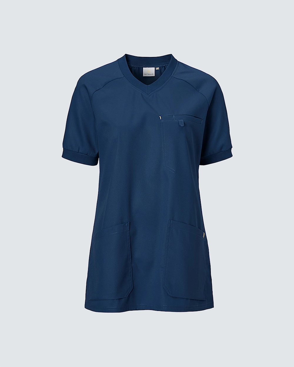 Nytello Bussarong V-ringad dam erbjuder komfort och funktionalitet för vårdpersonal i behov av praktiska lösningar. Denna bussarong har en bröstficka med pennficka, två sidfickor samt en nyckelhälla och mobilficka, gott om plats för nödvändiga redskap.