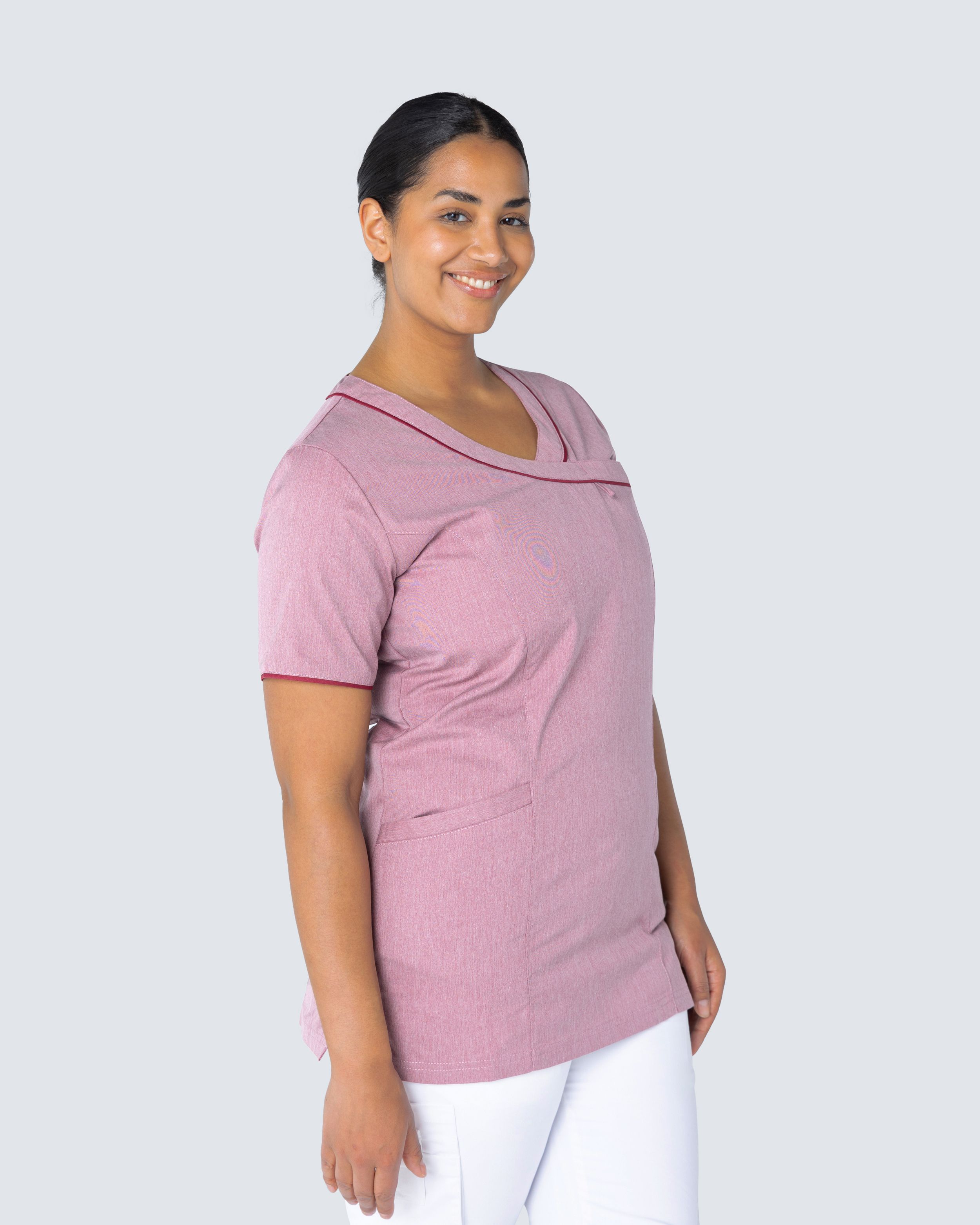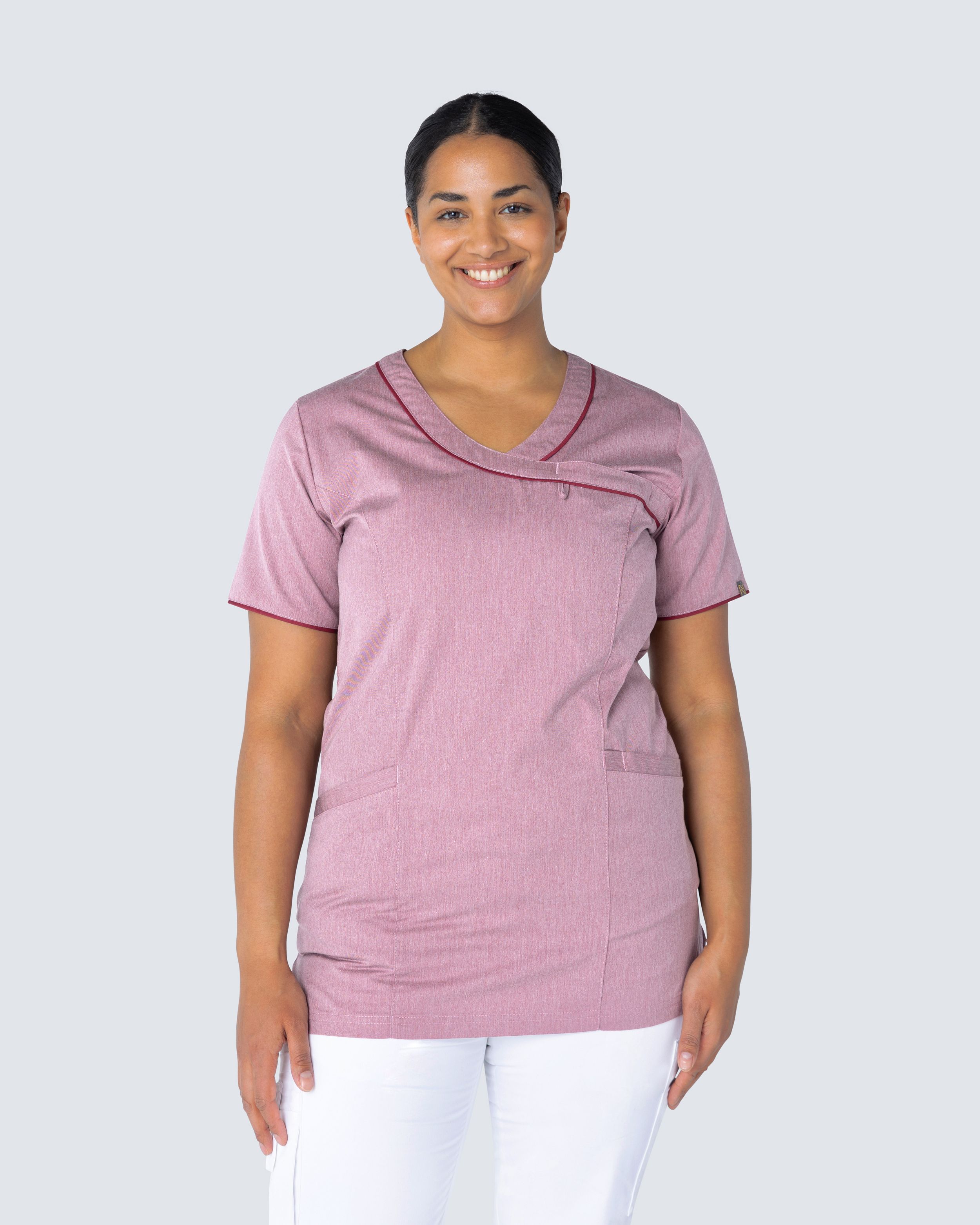 Plaggen i Nytellos Harmony-kollektion har en melangestruktur med enfärgad passpoal. Många funktionella detaljer och fokus på passform kännetecknar kläderna som är tillverkade i 50% bomull och 50% polyester. Samtliga plagg tvättas i 60C.