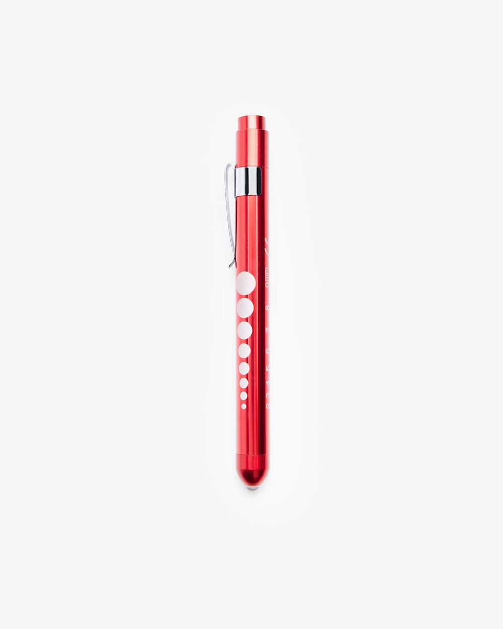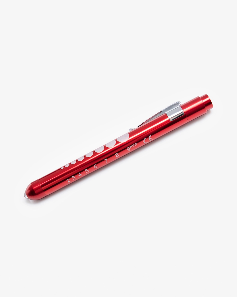 På den ena sidan av pennlampan finns en pupillstorleksmätare. Skala från 2 mm - 9 mm. På andra sidan finns avståndsmätare som visar 0 mm - 50 mm. Pennlampan finns i flera tjusiga färger och går att matcha med våra andra produkter.