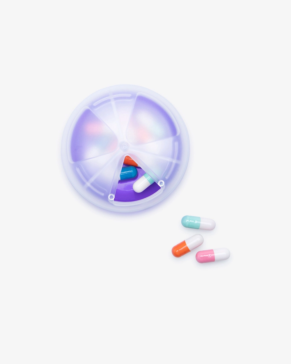 Glömmer du ibland dina tabletter? Denna lilla pillerbox med tre fack hjälper dig att hålla koll på doserna – perfekt för vardagen eller som reserv. Smidig att ha i fickan eller väskan, och ett fint sätt att visa din favoritfärg.