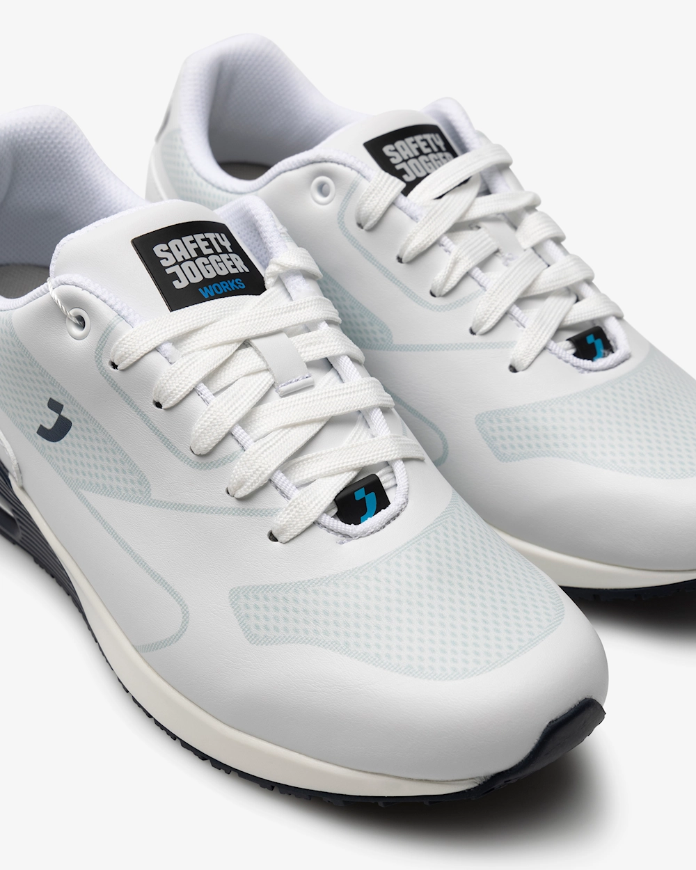 Dessa moderna sneakers från Safety Jogger är utrustade med ESD-skydd för att motverka statiska urladdningar. Sneakerns uttagbara fotbädd kombinerad med en memory foam-innersula ger personlig komfort, vilket underlättar långa arbetsdagar. Halksäker sula säkerställer stabilitet även på hala ytor. Tillverkade i veganskt material.