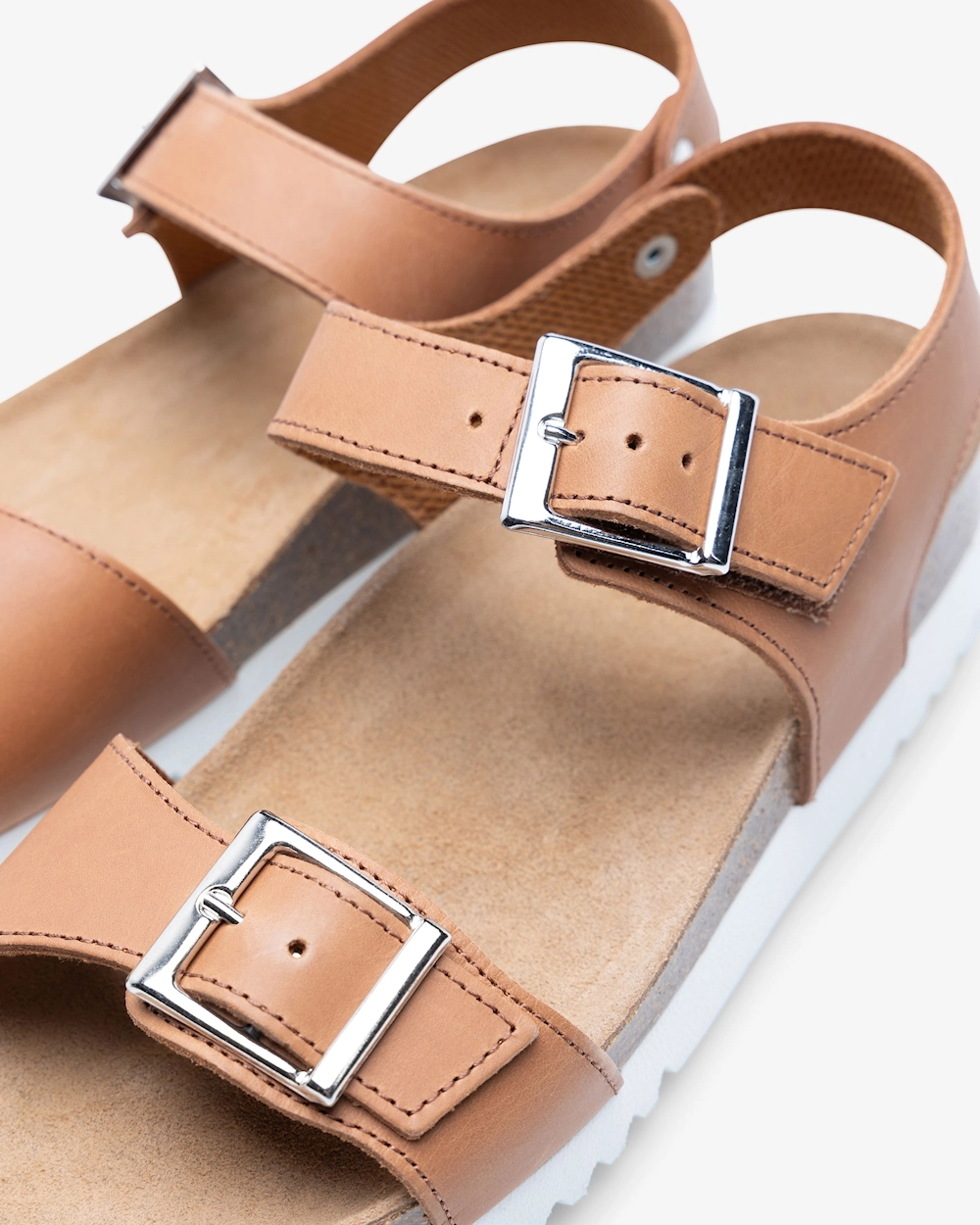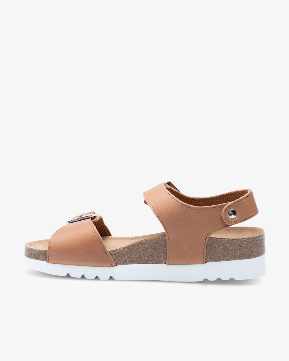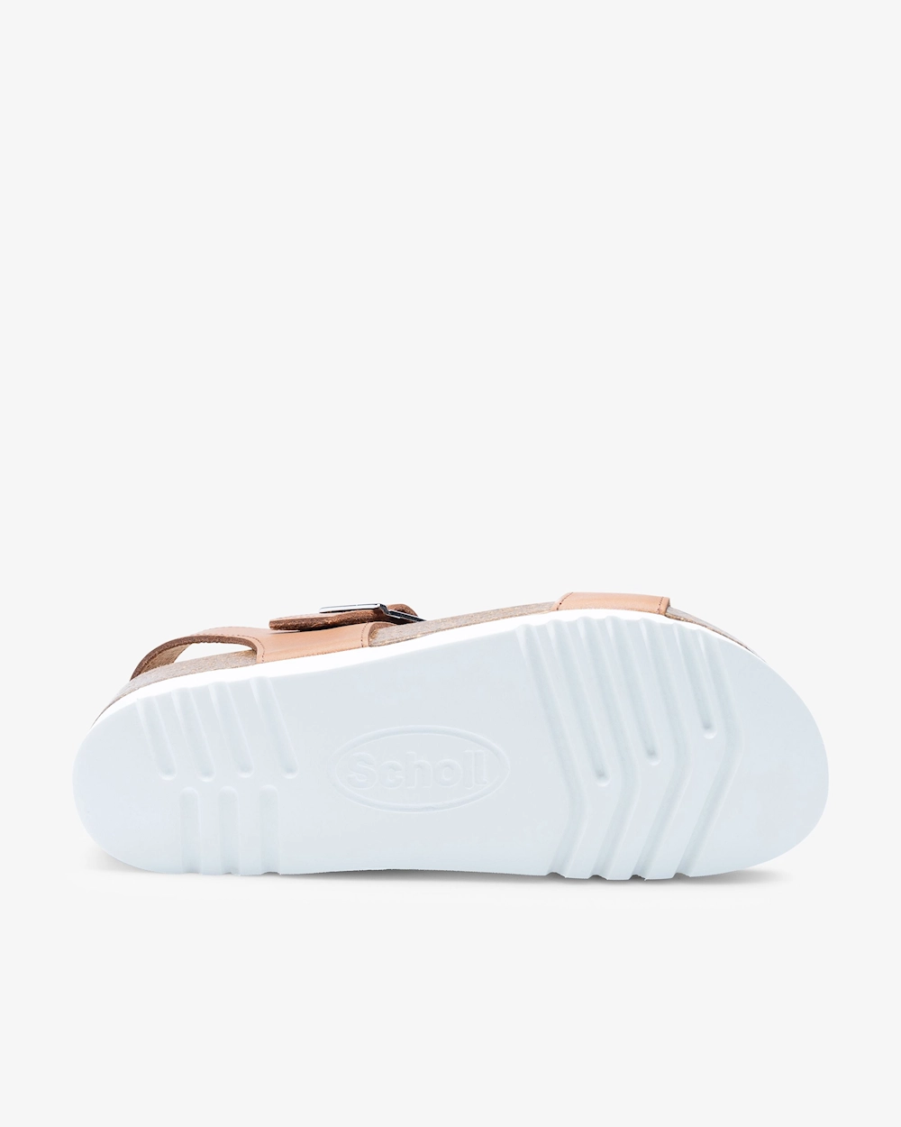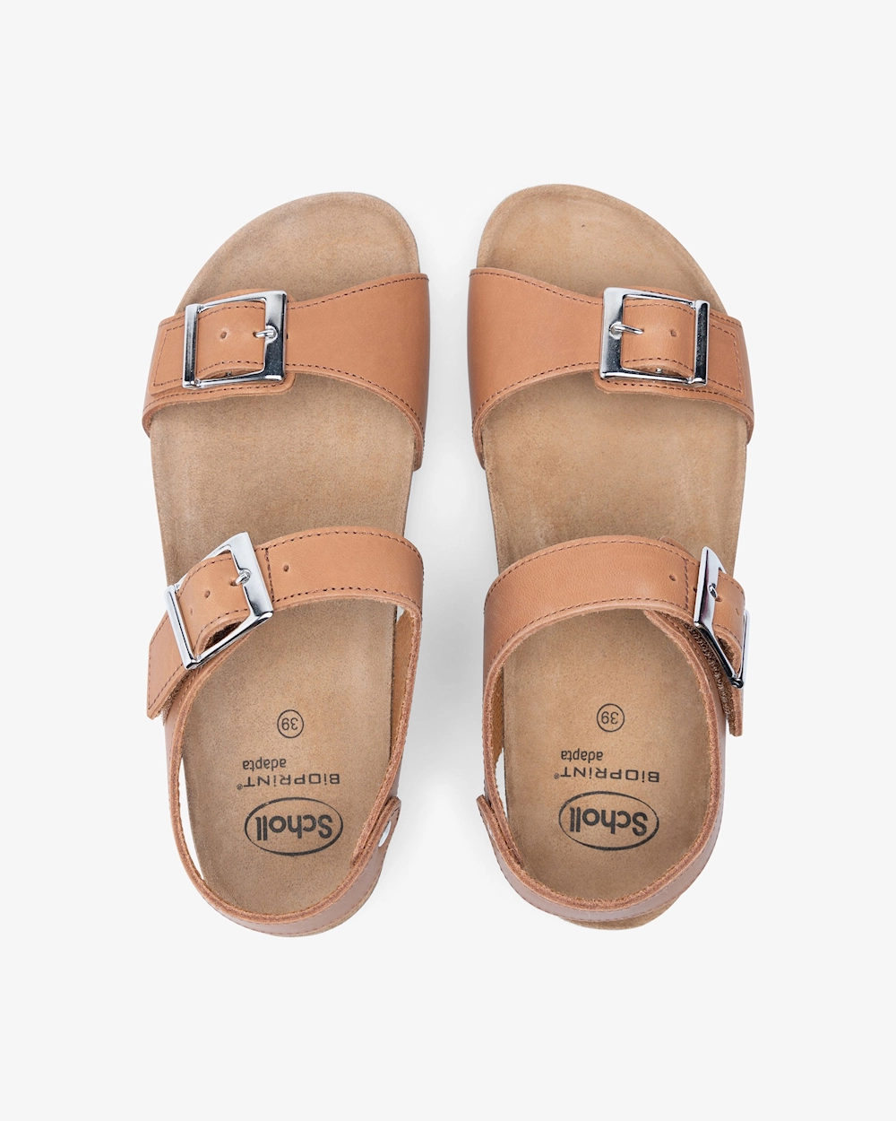 Scholl Filippa har ergonomiskt uppbyggd fotbädd som följer fotens former och ger extra stöd i hålfot och främre fotvalv. Bioprint Adapta-teknologin bidrar till en bättre kroppshållning och korrekt fotställning, vilket minskar påfrestningar i knä, höft och axlar. Sandalen har två justerbara remmar och ovandel i mjukt skinn.