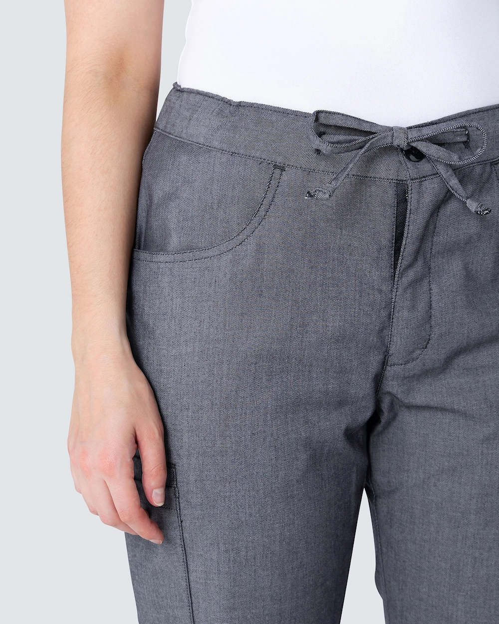 Med dessa arbetsbyxor får du en skön och bekväm byxa med dragsko och stretch i midjan samtidigt som knapp och blixtlås ger ett klädsamt och stilrent utseende. Byxan har sidfickor, två benfickor och en bakficka med gott om förvaring. Med mudd i benslut får du en fin passform och byxan sitter fint oavsett om du är lång eller kort.