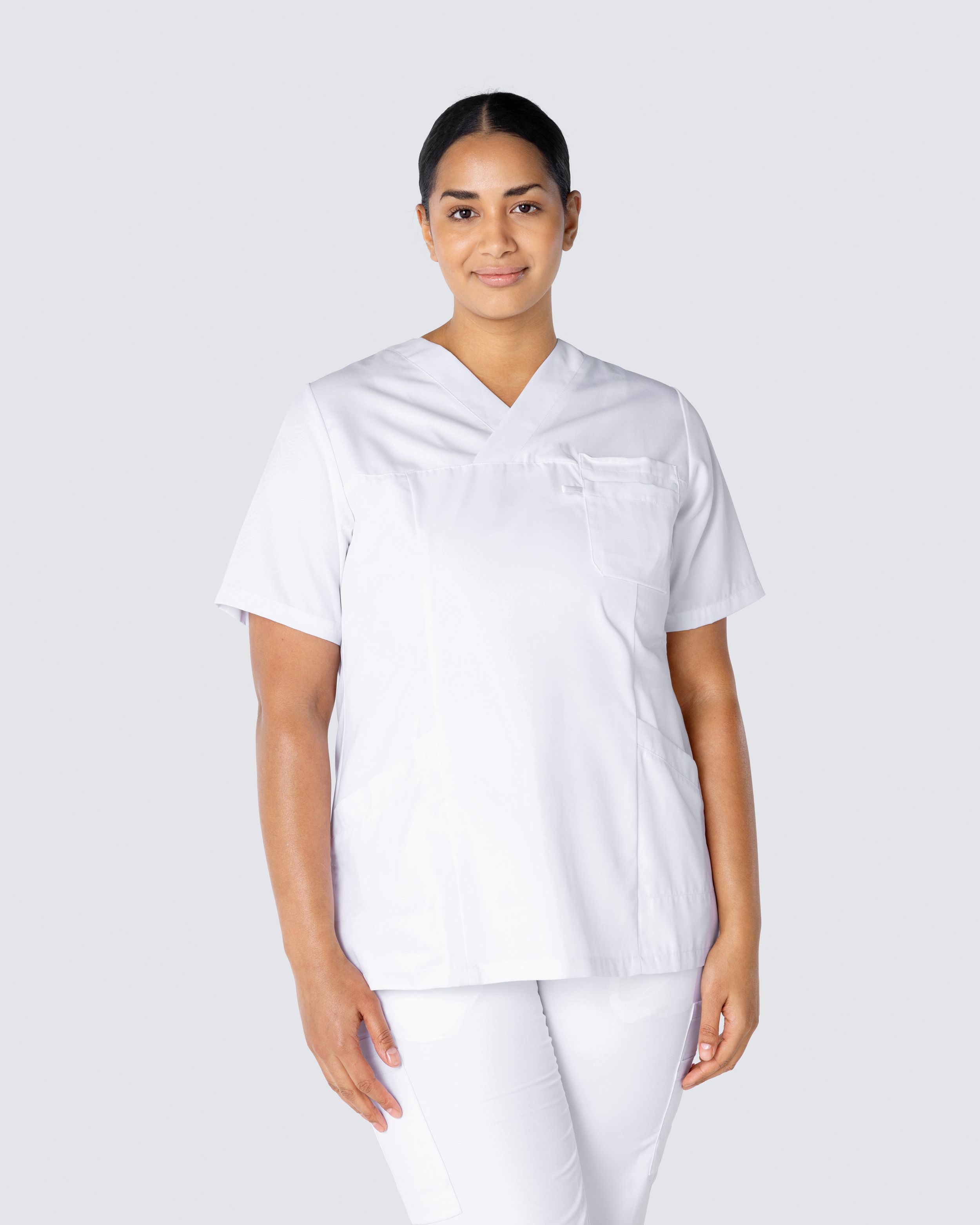 Denna sköna vårdtunika är tillverkad i miljövänlig Tencel som ger en lätt och skön känsla på kroppen, andas bra och ger samtidigt en hög komfort. Tunikan har två snedställda framfickor med nyckehälla och telefonficka samt en bröstficka för förvaring av pennor och block. Sprund i sidan ger god rörelsevidd.
