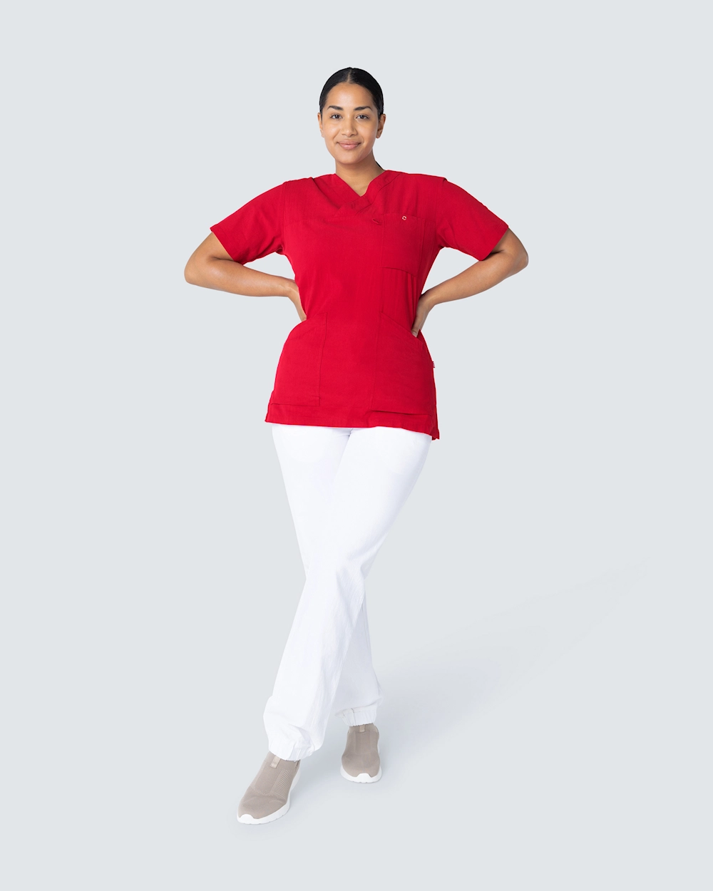 Bekväm bussarong i krinklad bomull i en lätt insvängd modell som lyfter fram dina former. South Wests bussarong i krinklad bomull har en mycket mjuk komfort, hög andningsförmåga och en luftig design som ger maximal rörelsefrihet. Bussarongen har en klassisk v-ringning och figurnära passform som ger en mycket fin silhuett. Med två rymliga sidofickor, varav en utrustad med nyckelhållare och telefonficka, och en bröstficka med ringtryckknapp har du gott om plats för pennficka, sax, ID-kort och alla andra redskap som behövs för en dag i vården.