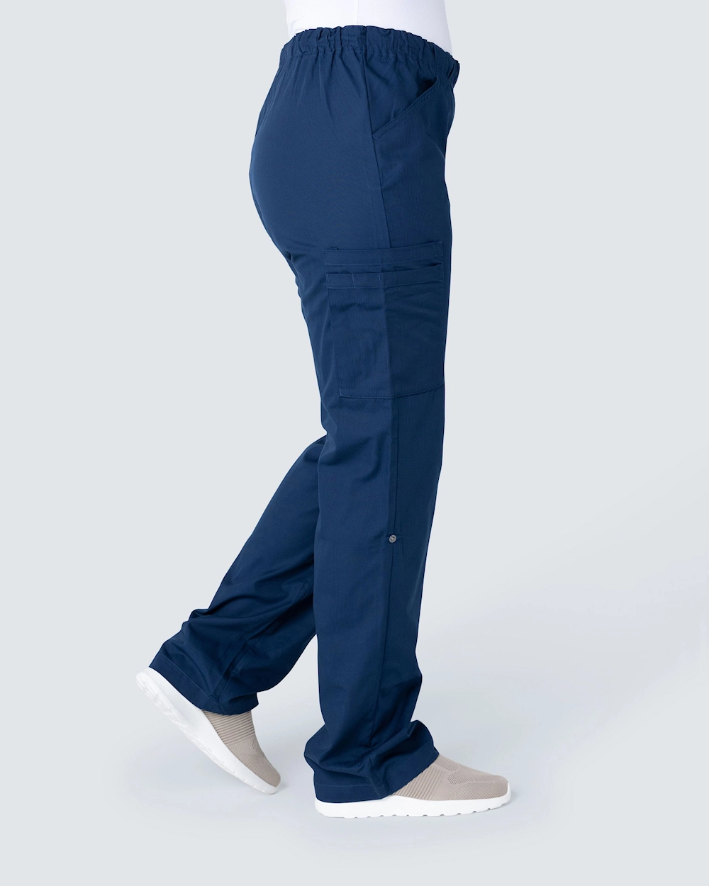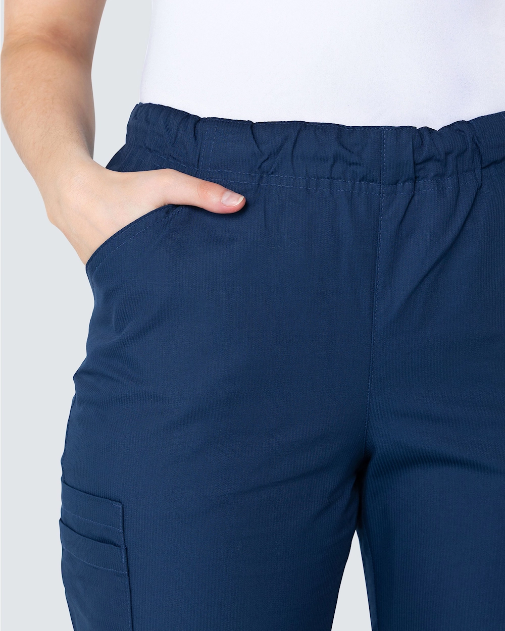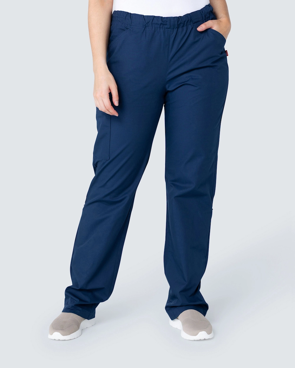 Byxorna är tillverkade av en blandning mellan bomull och polyester för att lyfta materialens bästa egenskaper. Bomullens slityrka och mjuka komfort ihop med polyesterns andningsförmåga och kvalitet är en perfekt kombination på kläder för en vårdgivare. Tack vare South West Staccatos resår och dragsko i midjan får arbetsbyxorna en skön komfort, du slipper både knäppning och gylf, samt att byxorna sitter på plats hela dagen. Dessa arbetsbyxor är optimala för arbete i varmare miljöer.