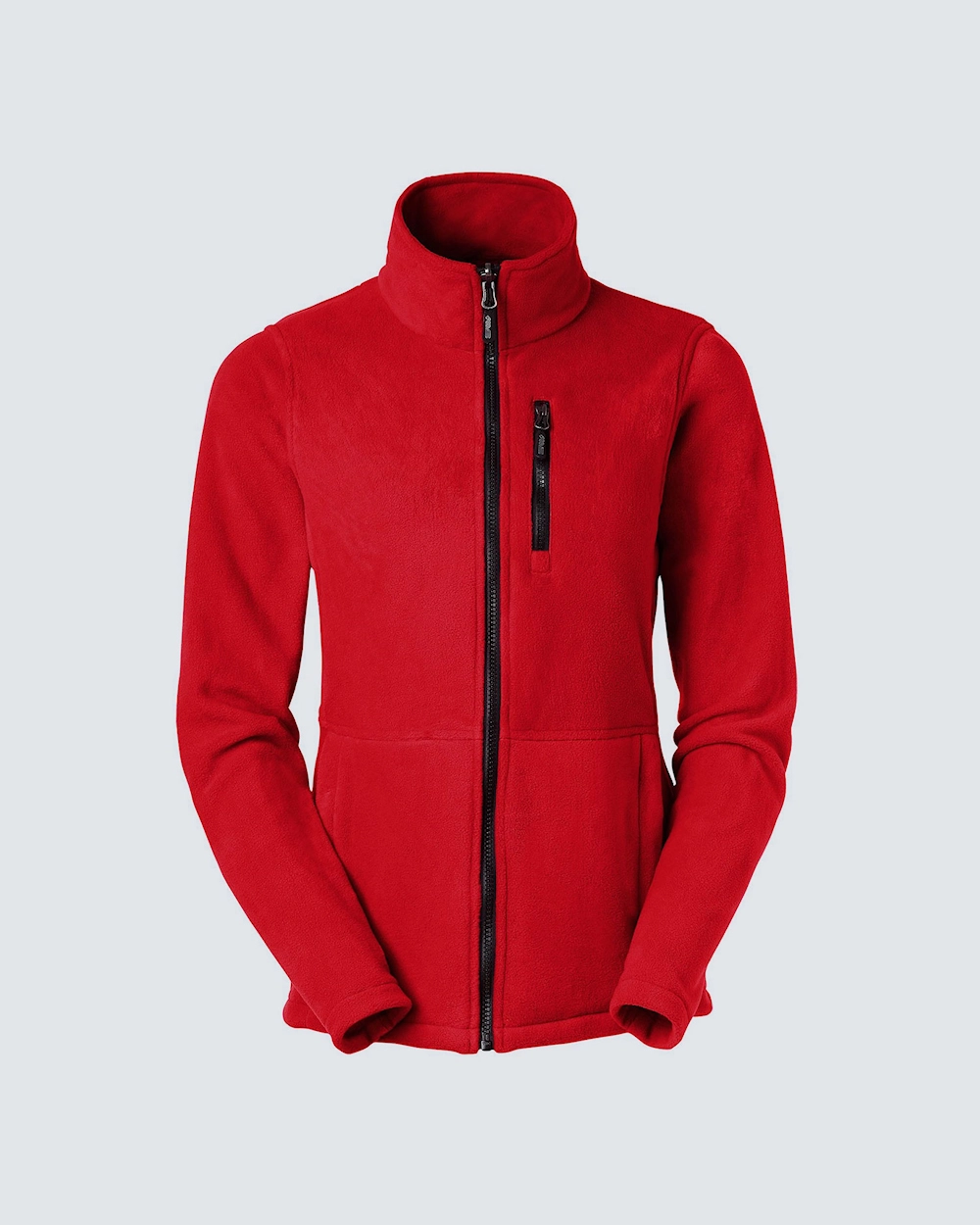 Fleecejacka med dampassform. Två sidfickor och en ficka på vänster bröst. Samtliga fickor har dragkedjor i kontrastfärg. Fleecen levereras med svarta zip-pullers som går att byta vid behov.
