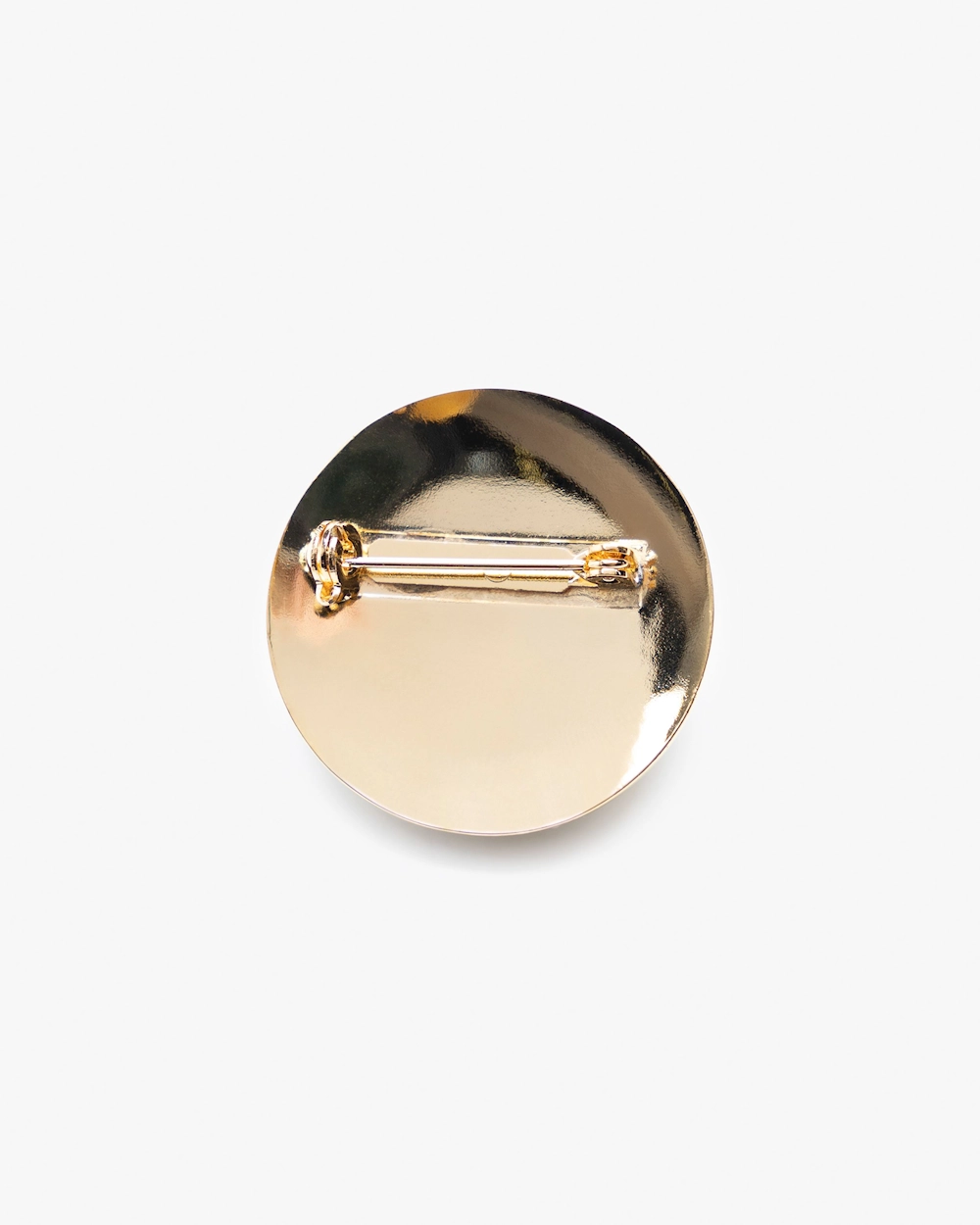 Vårdbroschen har en yta av epoxy som gör den blank och hållbar. Baksidan av vårdbroschen är av guldfärgad metall.