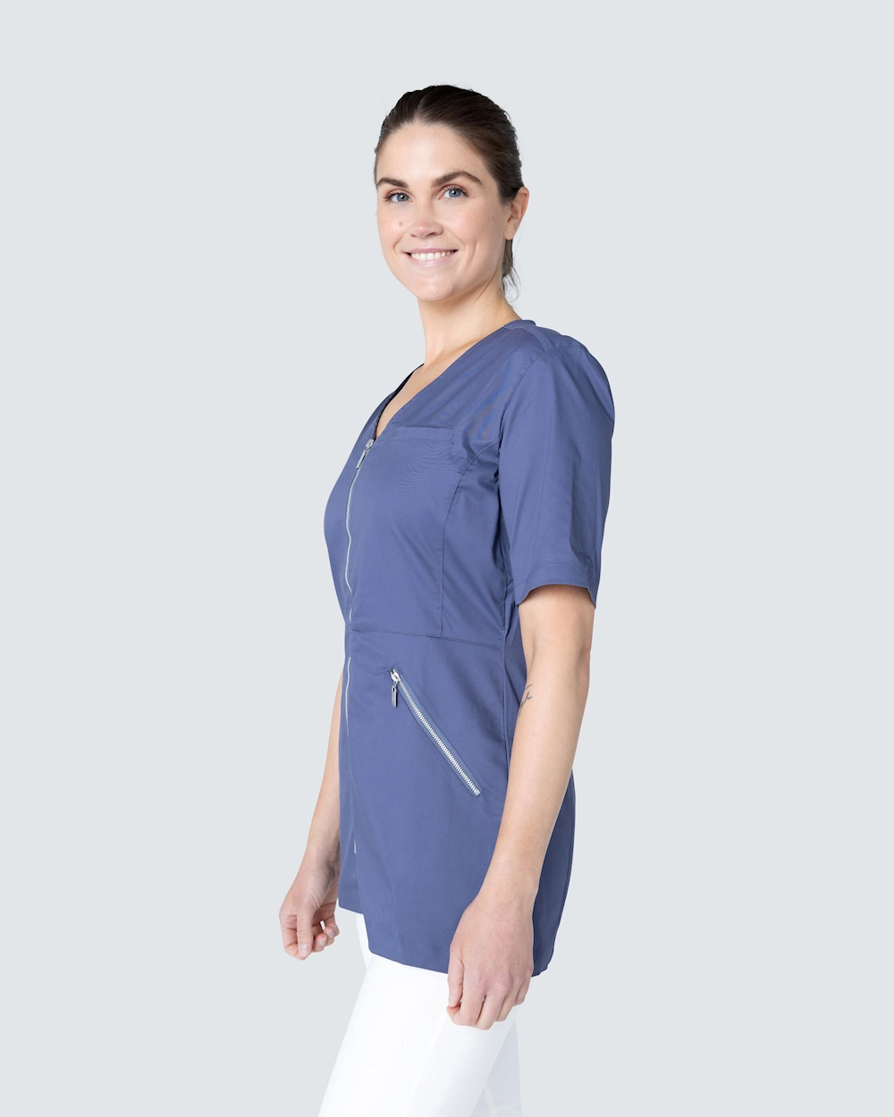 Den här tunikan från Wear at Work är tillverkad i ett slitstarkt och skönt stretchtyg med en snygg tvåvägsdragkedja framtill.