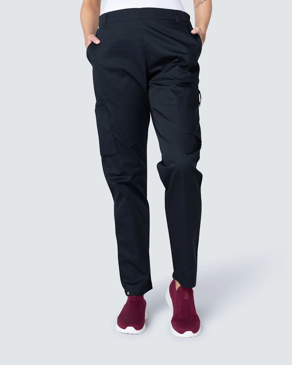 Bekväm arbetsbyxa i unisexmodell med reglerbar resår i linningen och tryckknapp i nederkanten för justering av fotvidden. Byxan har praktiska benfickor och är tillverkad i ett slitstarkt och färgbeständigt material som tål tvätt i höga temperaturer. Godkänd för industritvätt enligt ISO 15797:2018.