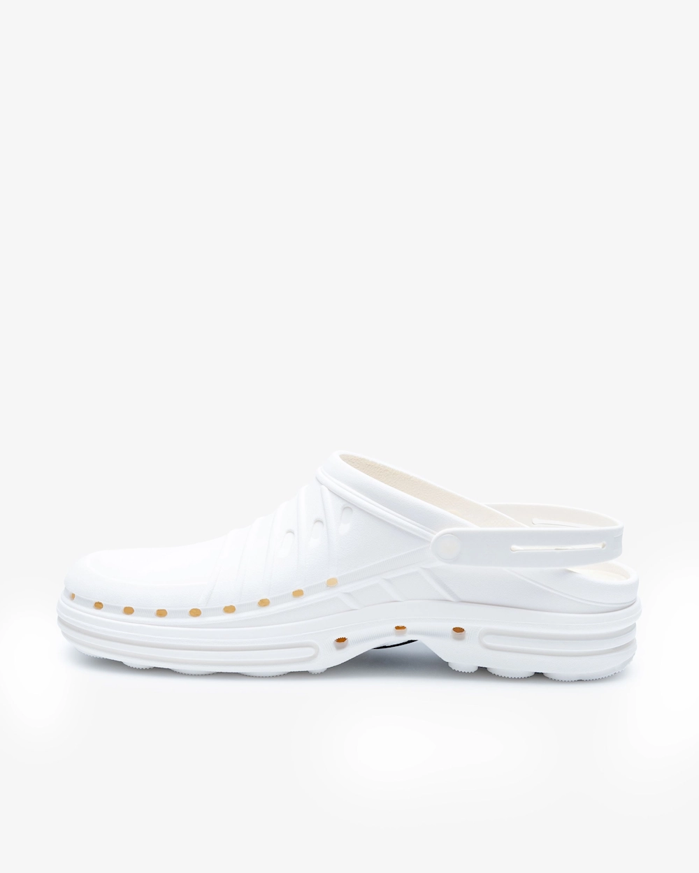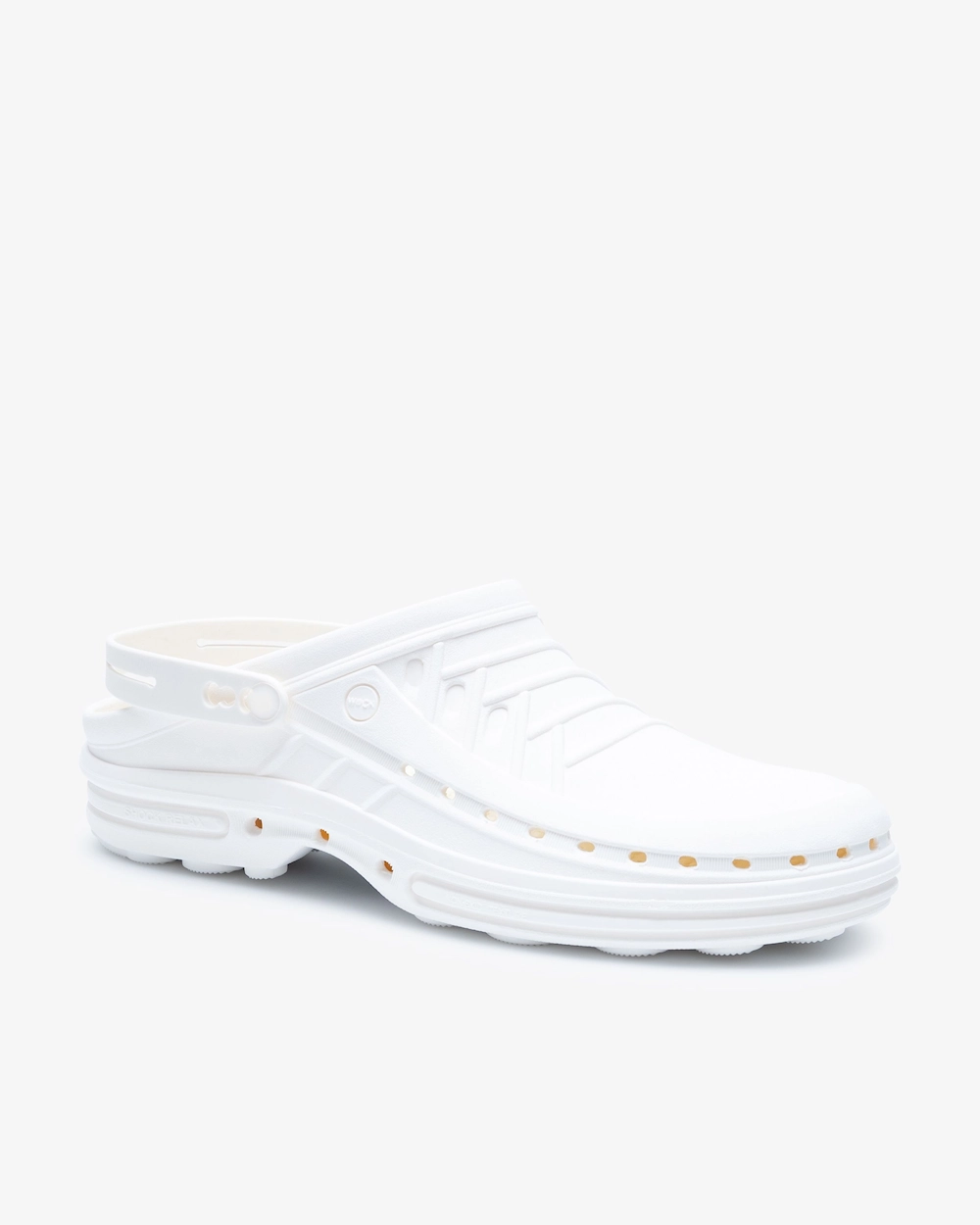Wock CLOG är idealisk för aktiviteter där det tillbringas många timmar stående och har en tendens att drabbas av obehag i foten. Skon klarar av höga hygienkrav och tuffa miljöer utan att göra avkall på komfort och utseende, vilket gör dem särskilt lämpliga för dig som jobbar inom vården. Hygienskons sula är antistatisk, halksäker och håller dig stadig på fötterna hela dagen. Innersulan har en stötdämpande effekt vilket minskar risken för trötta ben och fötter.